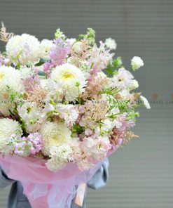 Bó hoa cúc mẫu đơn trắng, astilbe hồng và phi yến hồng tạo nên một tác phẩm sắc màu tinh tế. Sắc trắng thanh khiết của cúc mẫu đơn hòa quyện với bông astilbe hồng dịu dàng và phi yến hồng rực rỡ, mang đến cảm giác tươi mới và ngọt ngào. Đây là món quà hoàn hảo để thể hiện tình cảm chân thành, mang lại niềm vui và ấm áp cho người nhận trong những dịp đặc biệt.