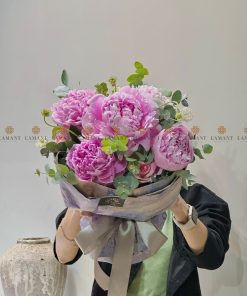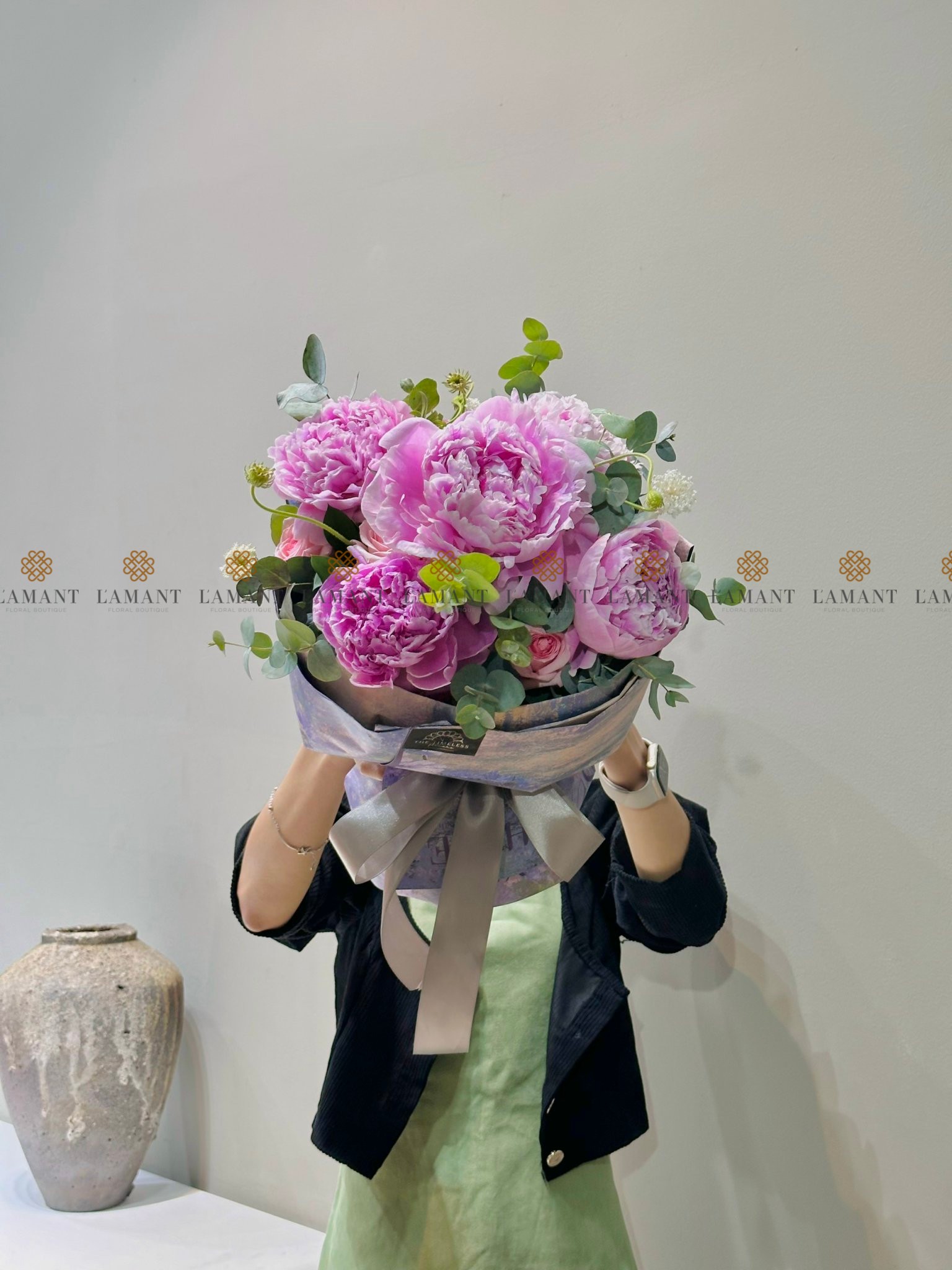 Bó hoa mẫu đơn hồng với form tròn tỏa sáng với sắc hồng ngọt ngào, tạo nên vẻ đẹp dịu dàng và quyến rũ. Những cánh hoa mềm mại xếp lớp hoàn hảo, mang đến cảm giác ấm áp và gần gũi. Đây là món quà lý tưởng để bày tỏ tình cảm chân thành, mang lại niềm vui và sự hạnh phúc cho người nhận trong những khoảnh khắc đáng nhớ!