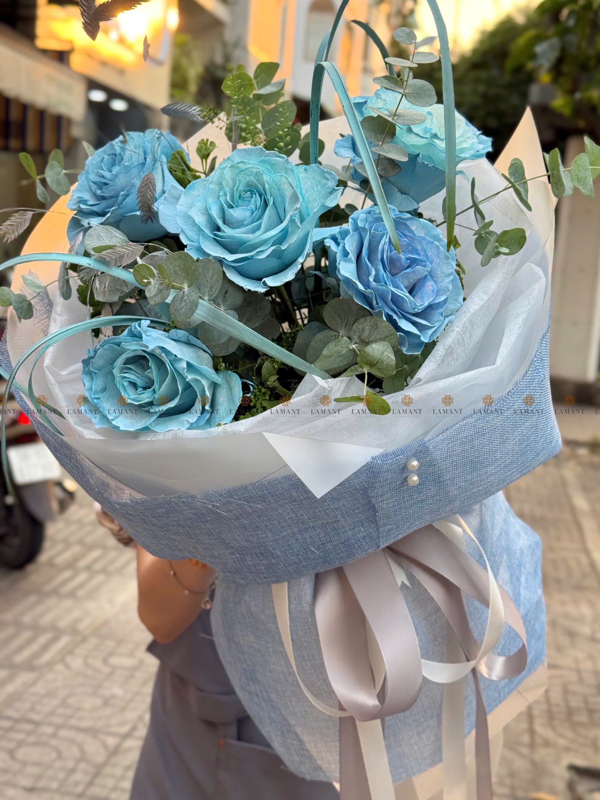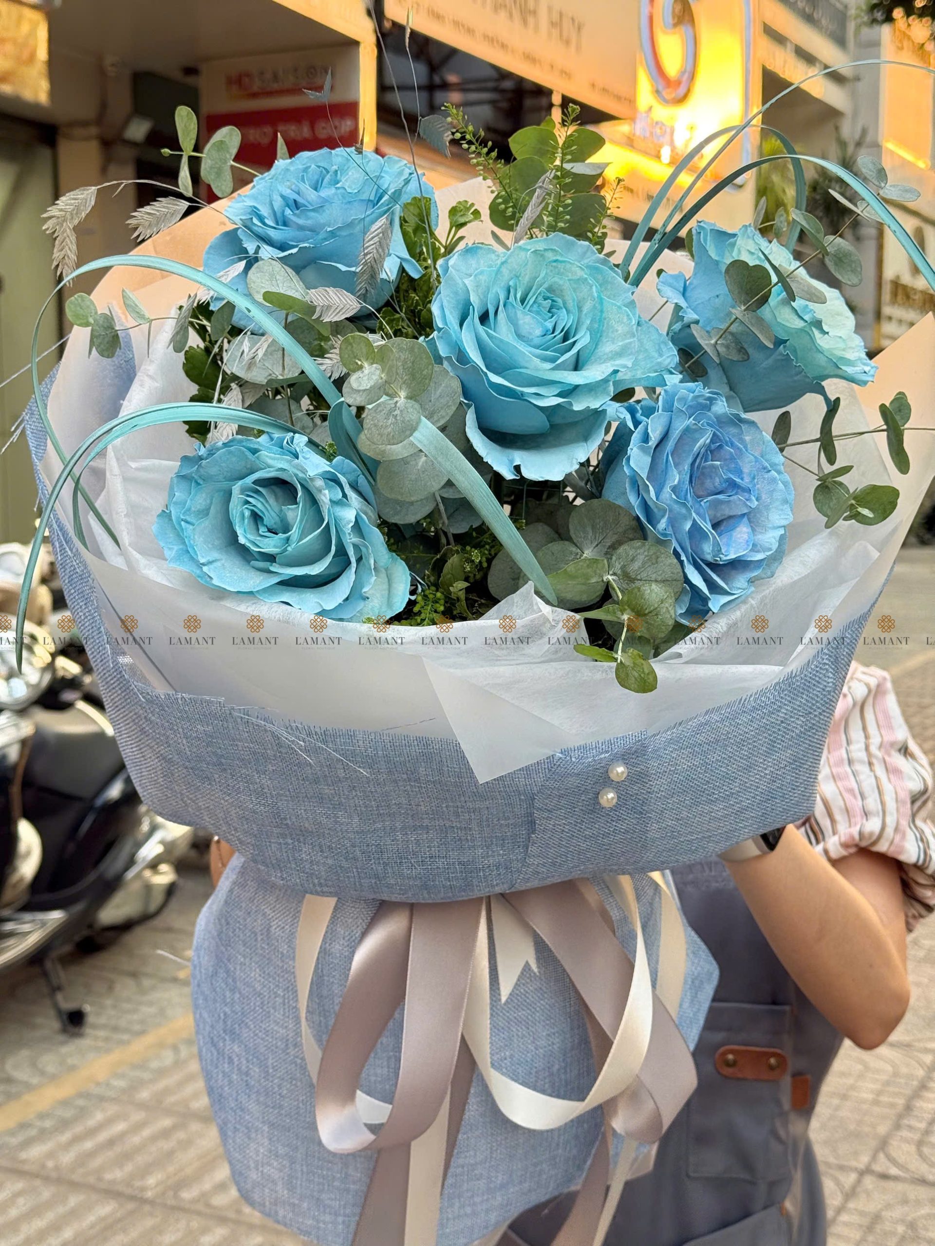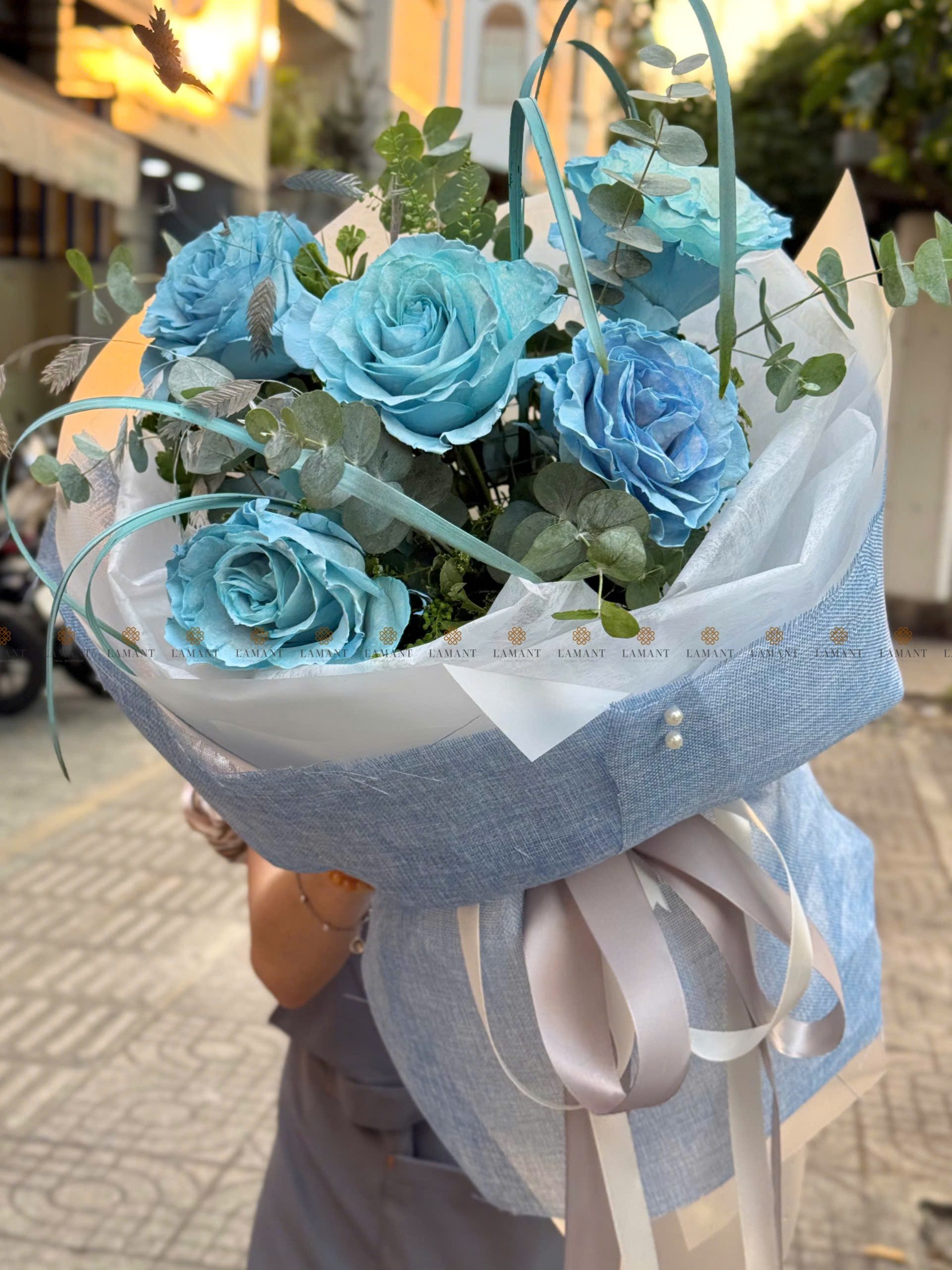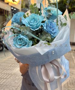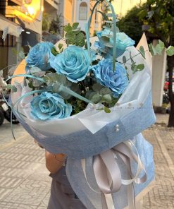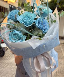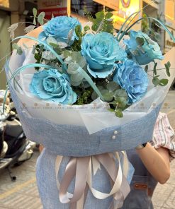 Bó hoa 5 cành Hoa Hồng Ecuador xanh Celeste A0146