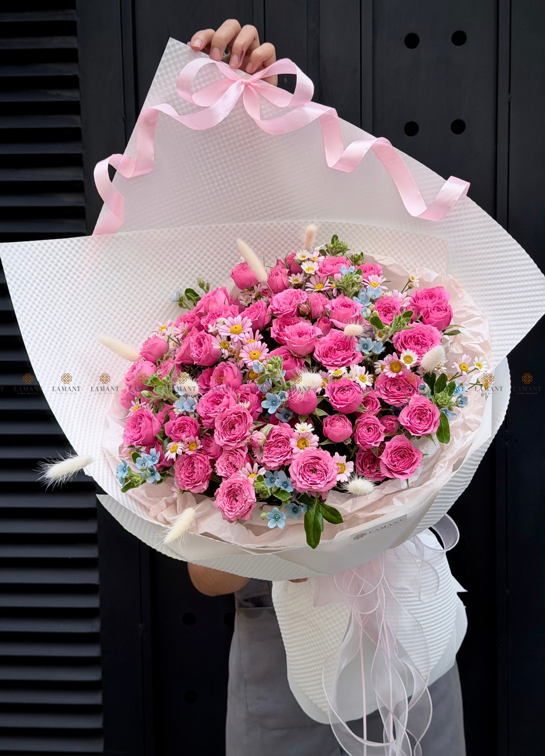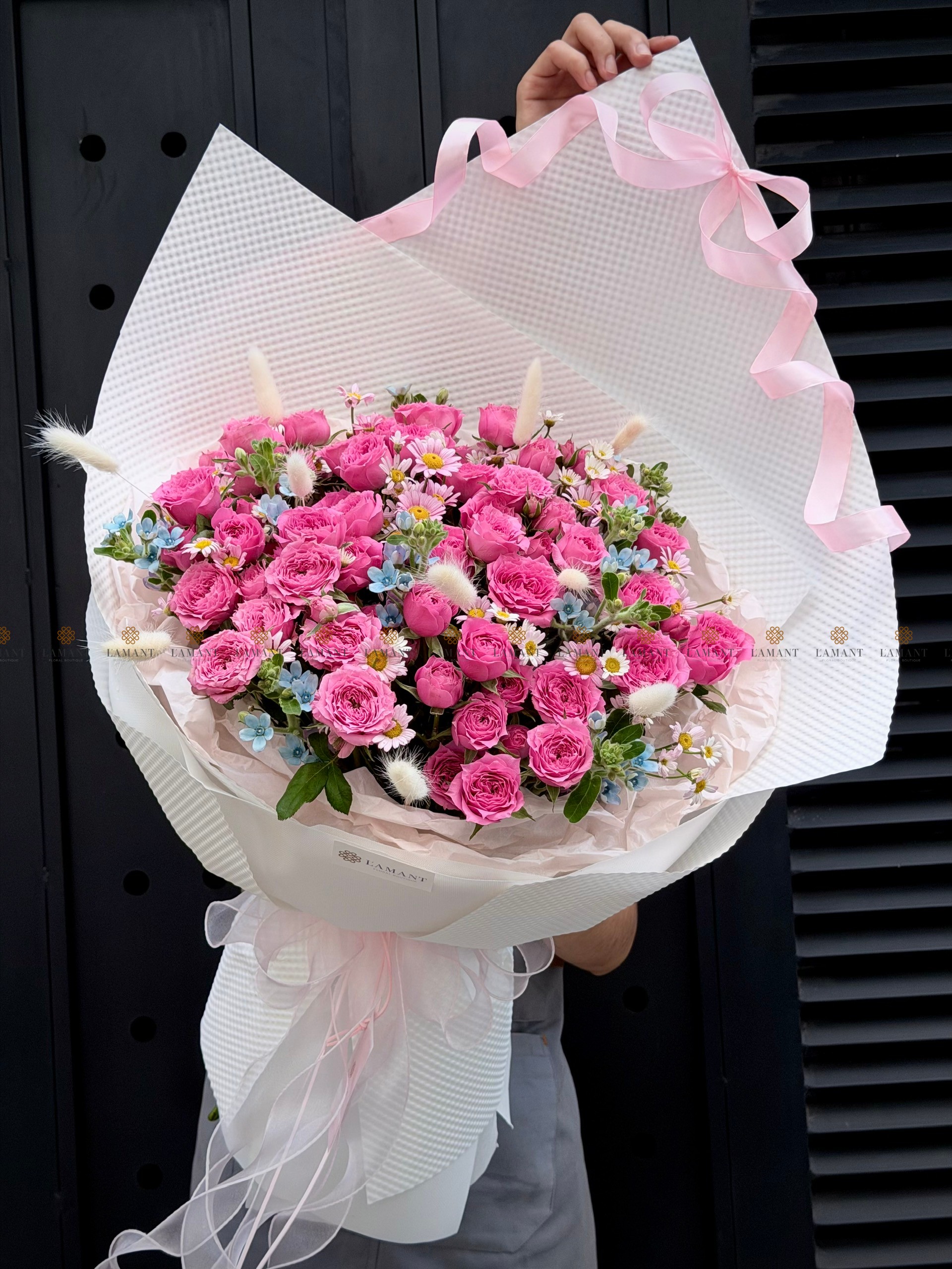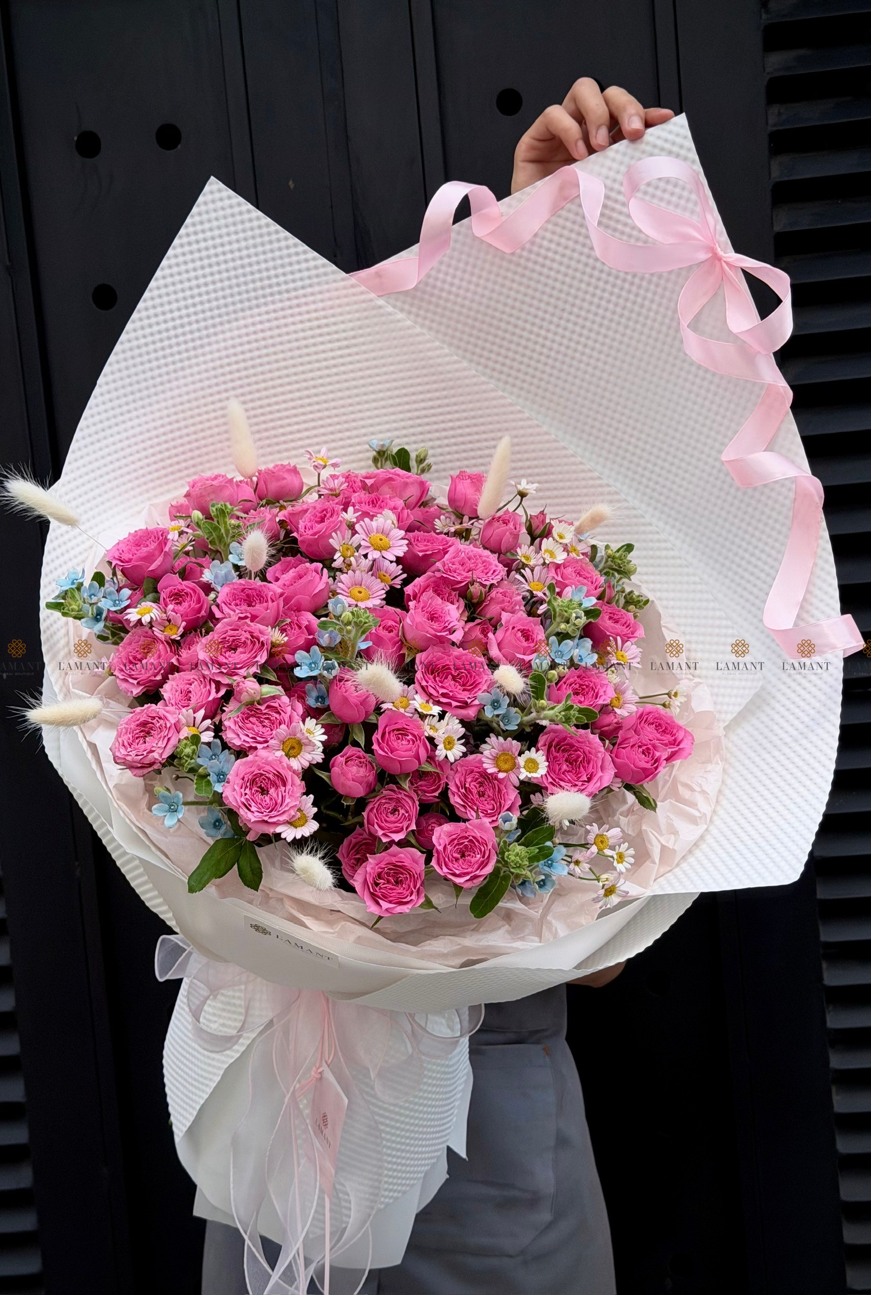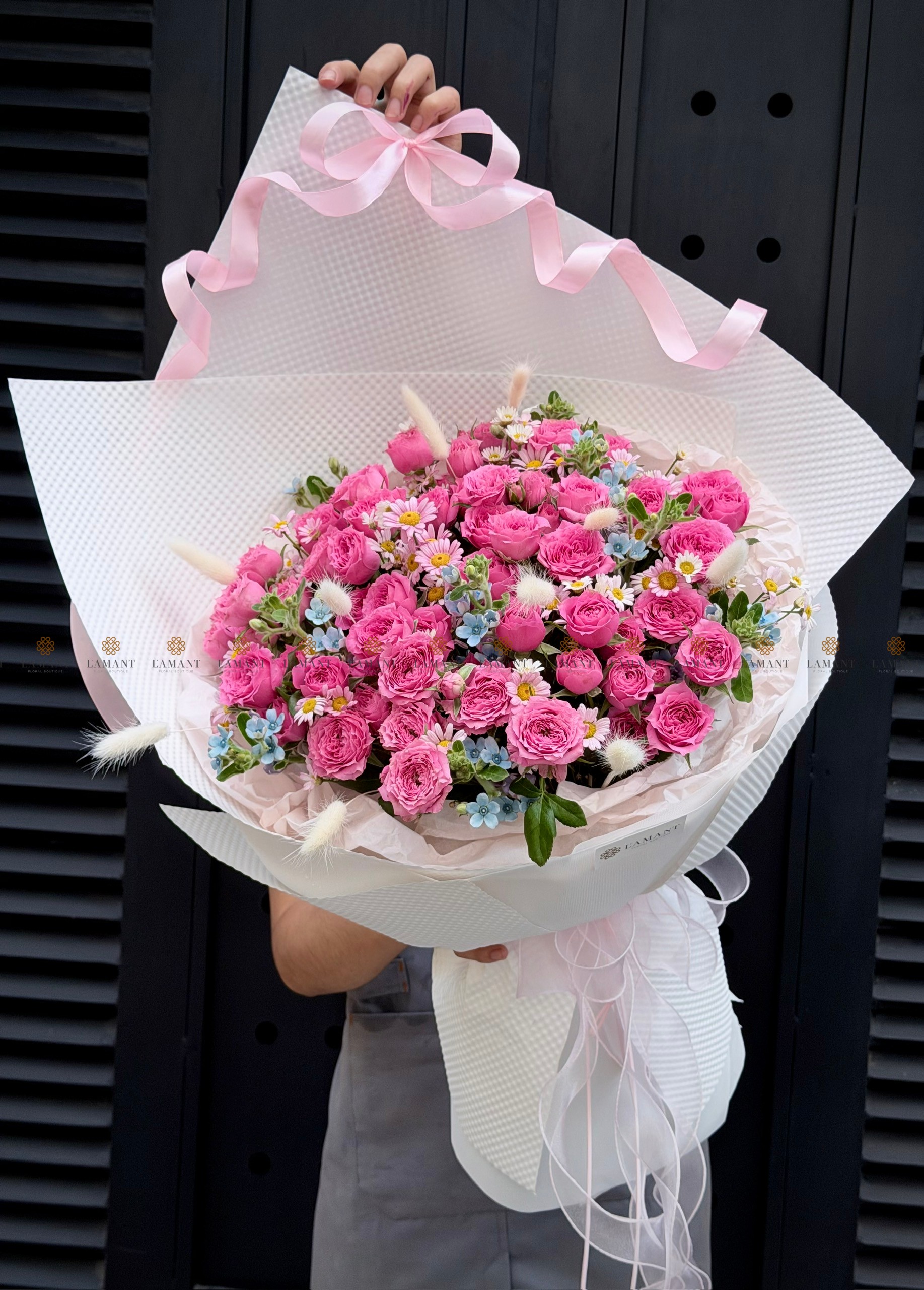 Hoa chính: Hồng chùm sophia, Cúc họa mi, ngôi sao xanh