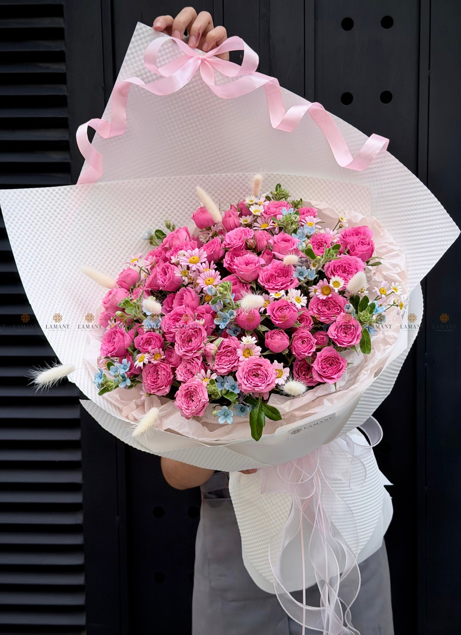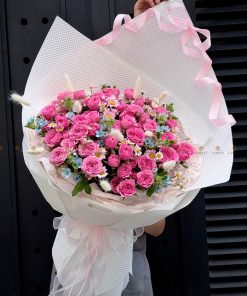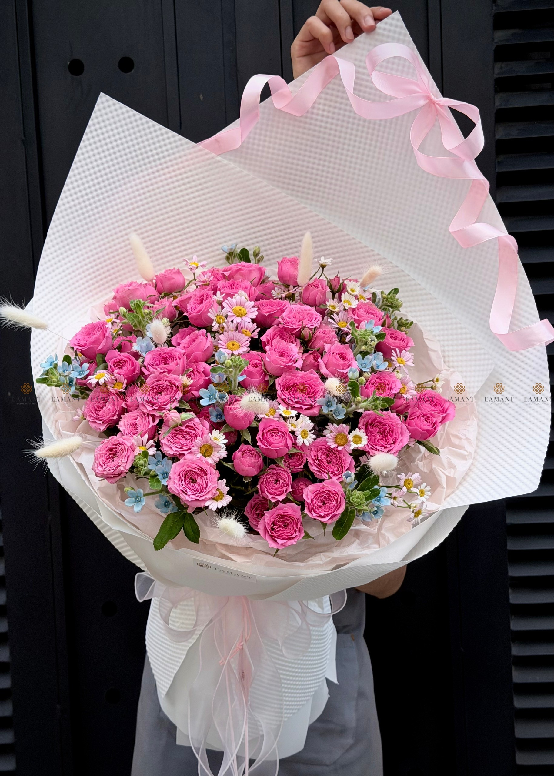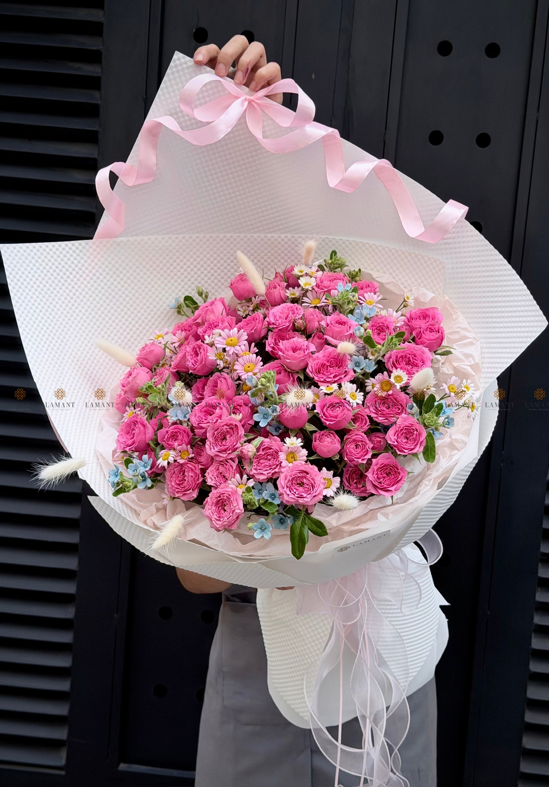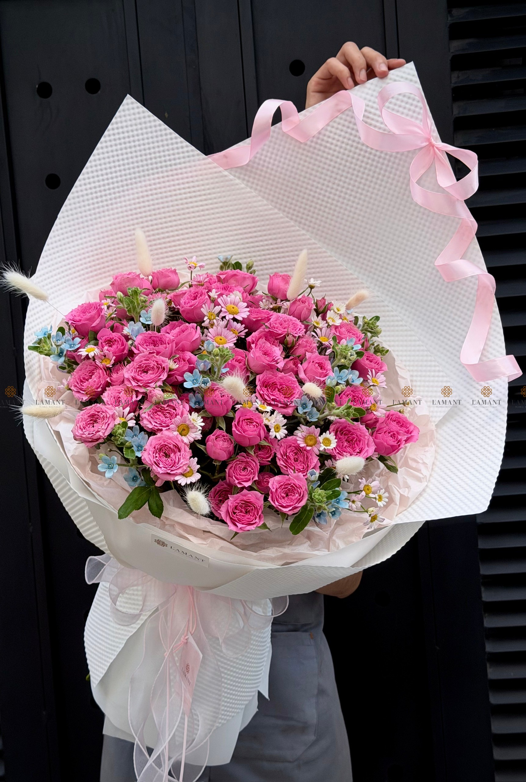 Hoa chính: Hồng chùm sophia, Cúc họa mi, ngôi sao xanh