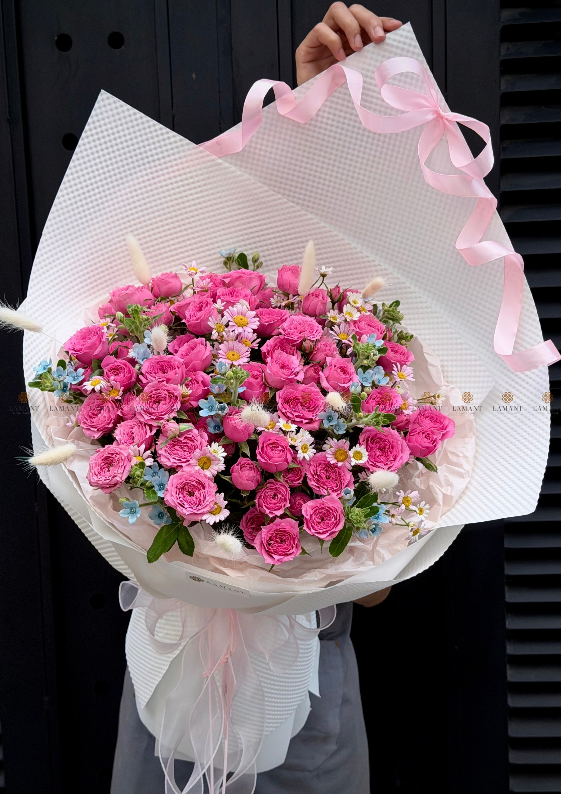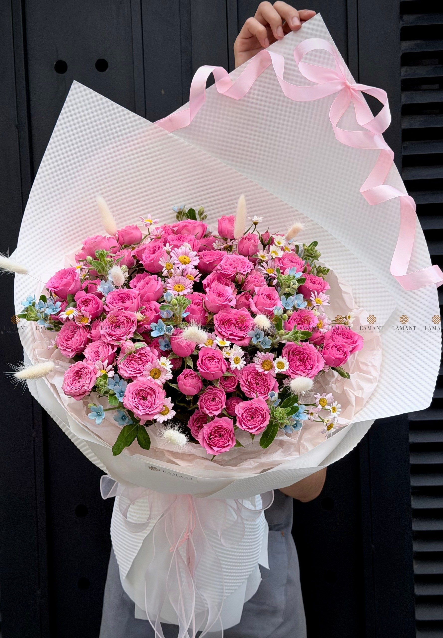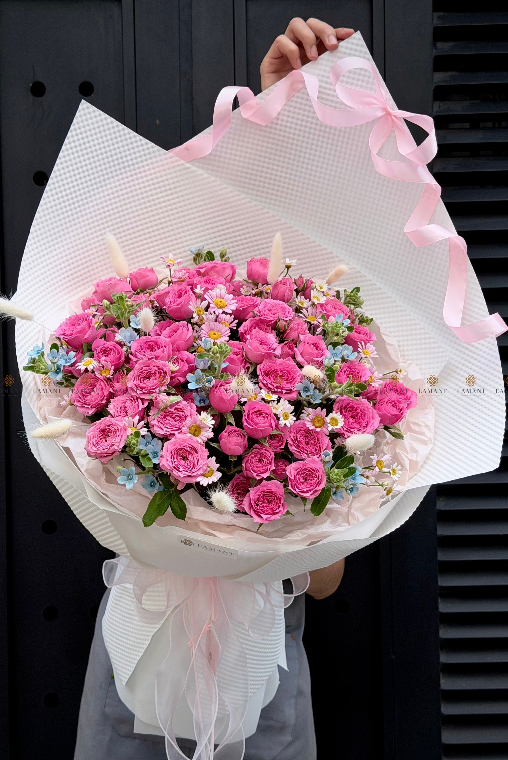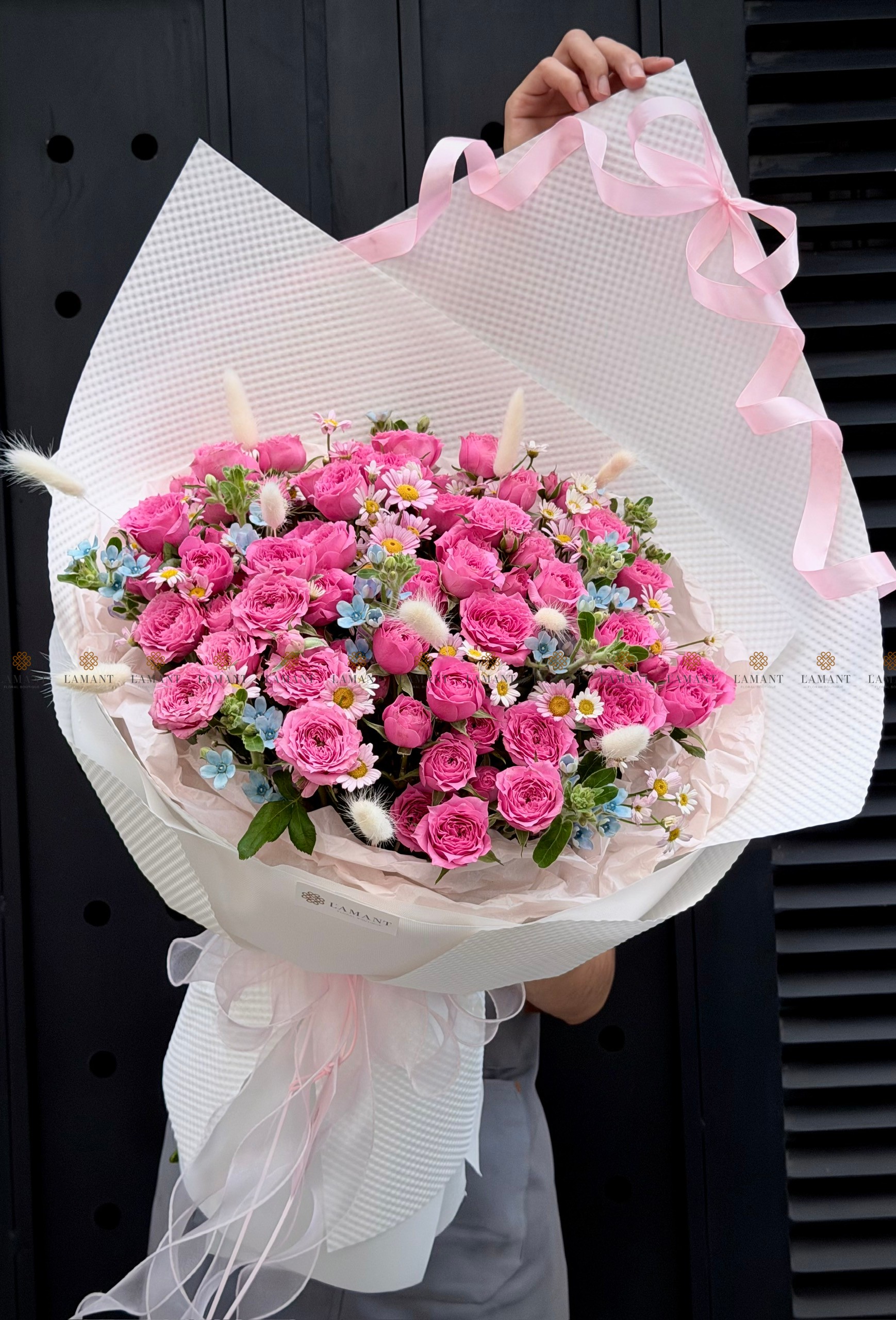 Hoa chính: Hồng chùm sophia, Cúc họa mi, ngôi sao xanh