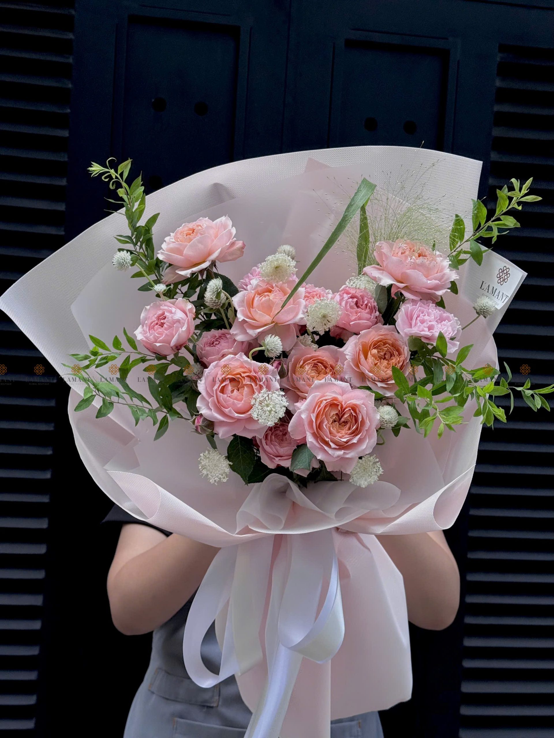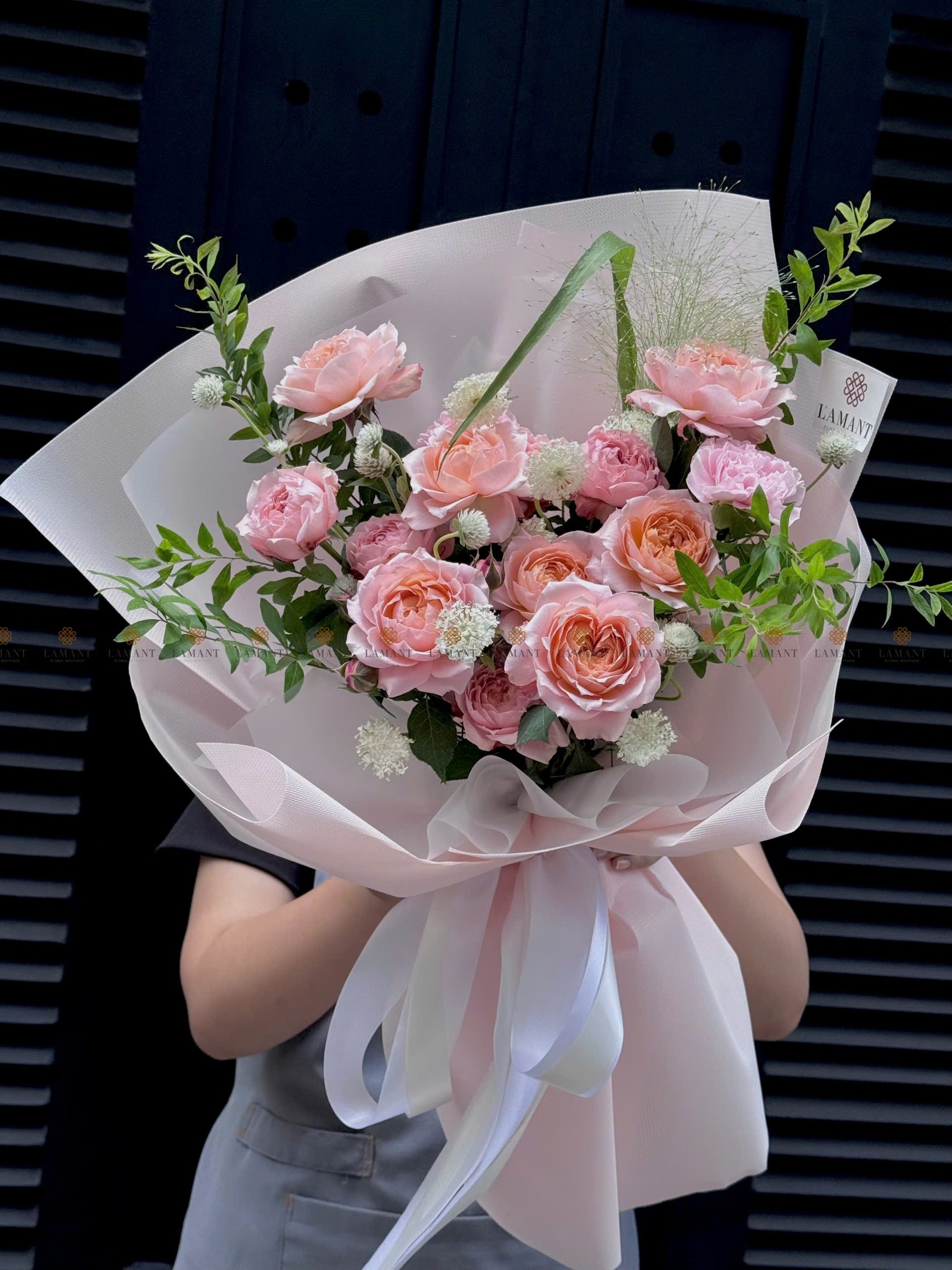 Bó hoa hồng Julibee mix phăng và hoa lá phụ A0206