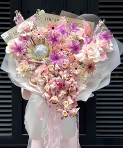 Bó hoa nhập khẩu mix Tone hồng A0425