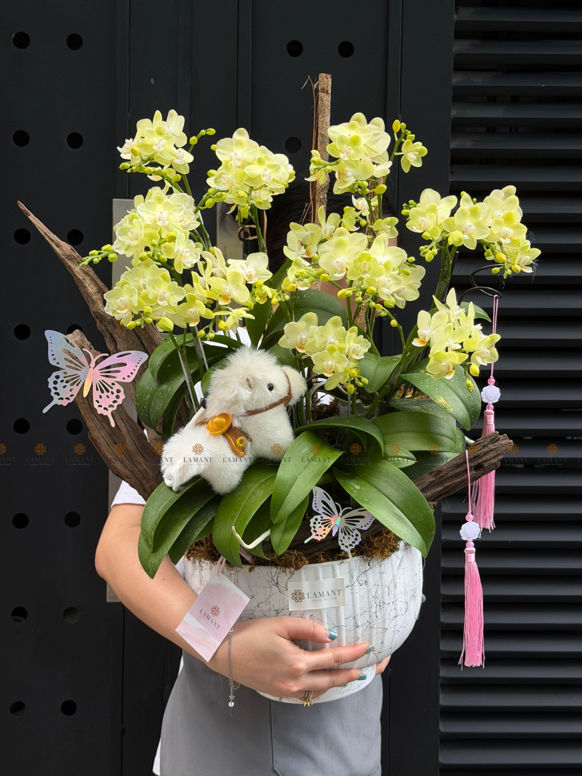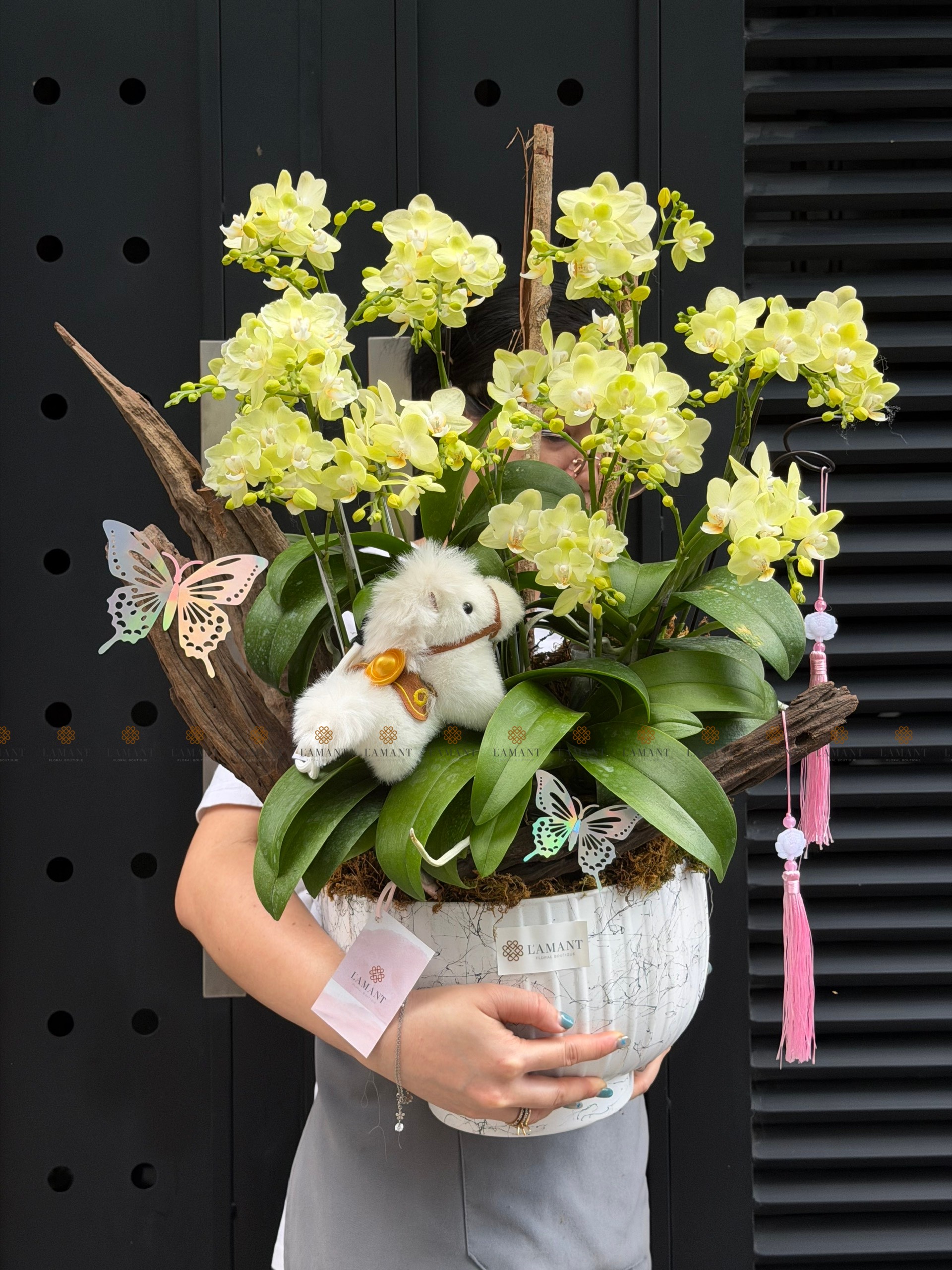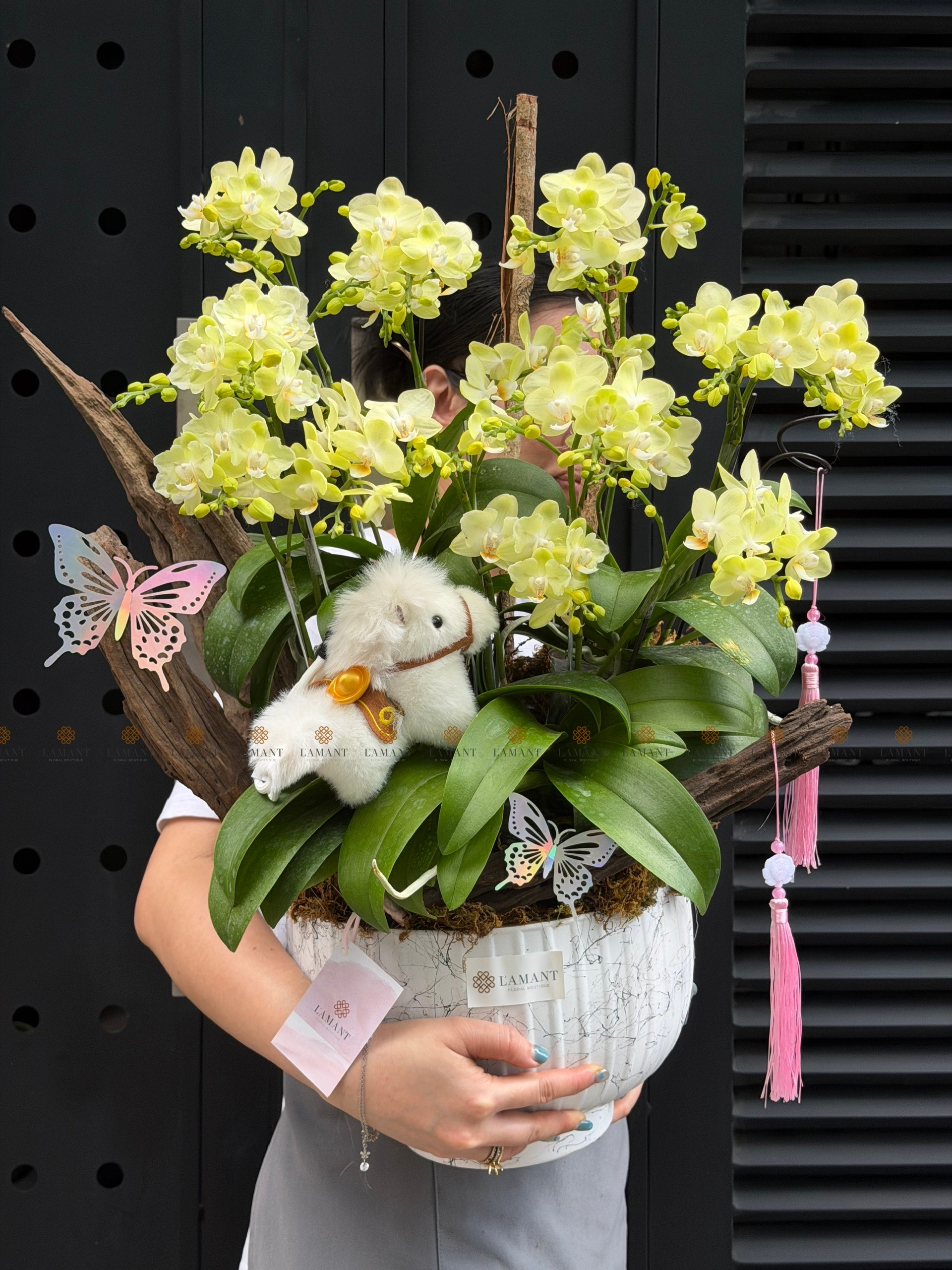 CHẬU HOA CHÚC MỪNG LAN MINI L0069