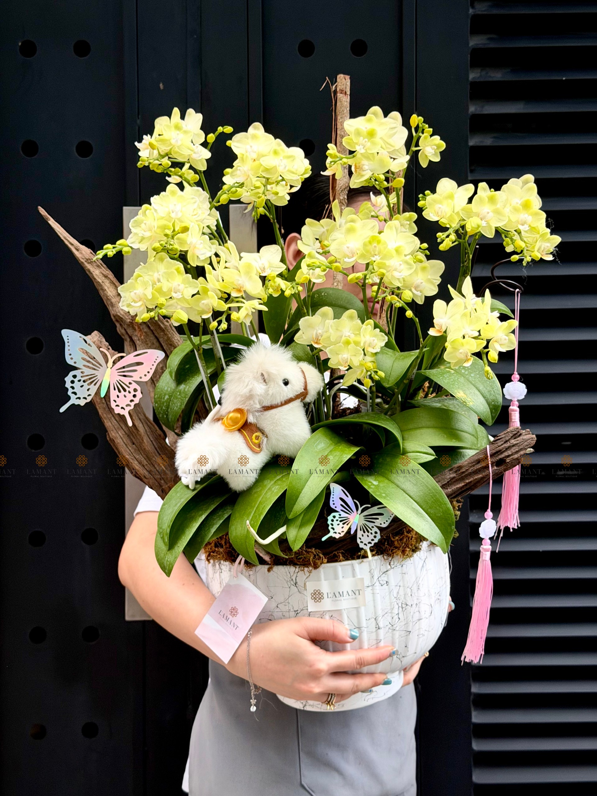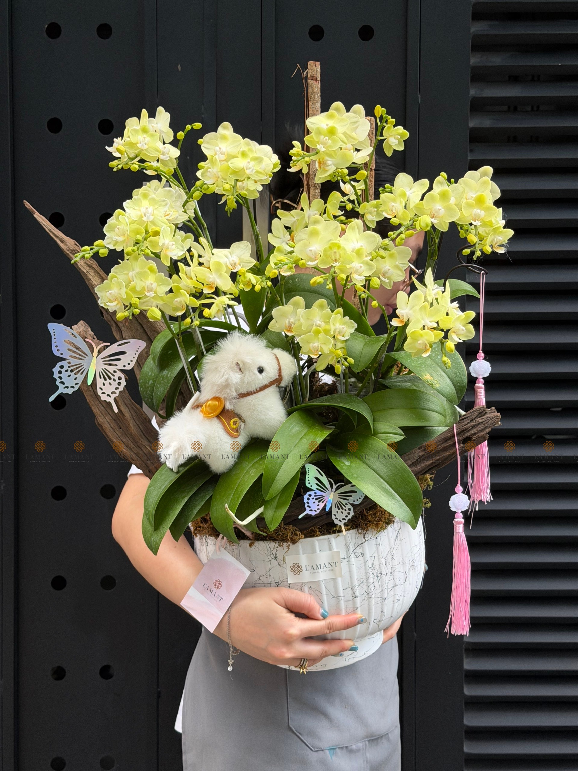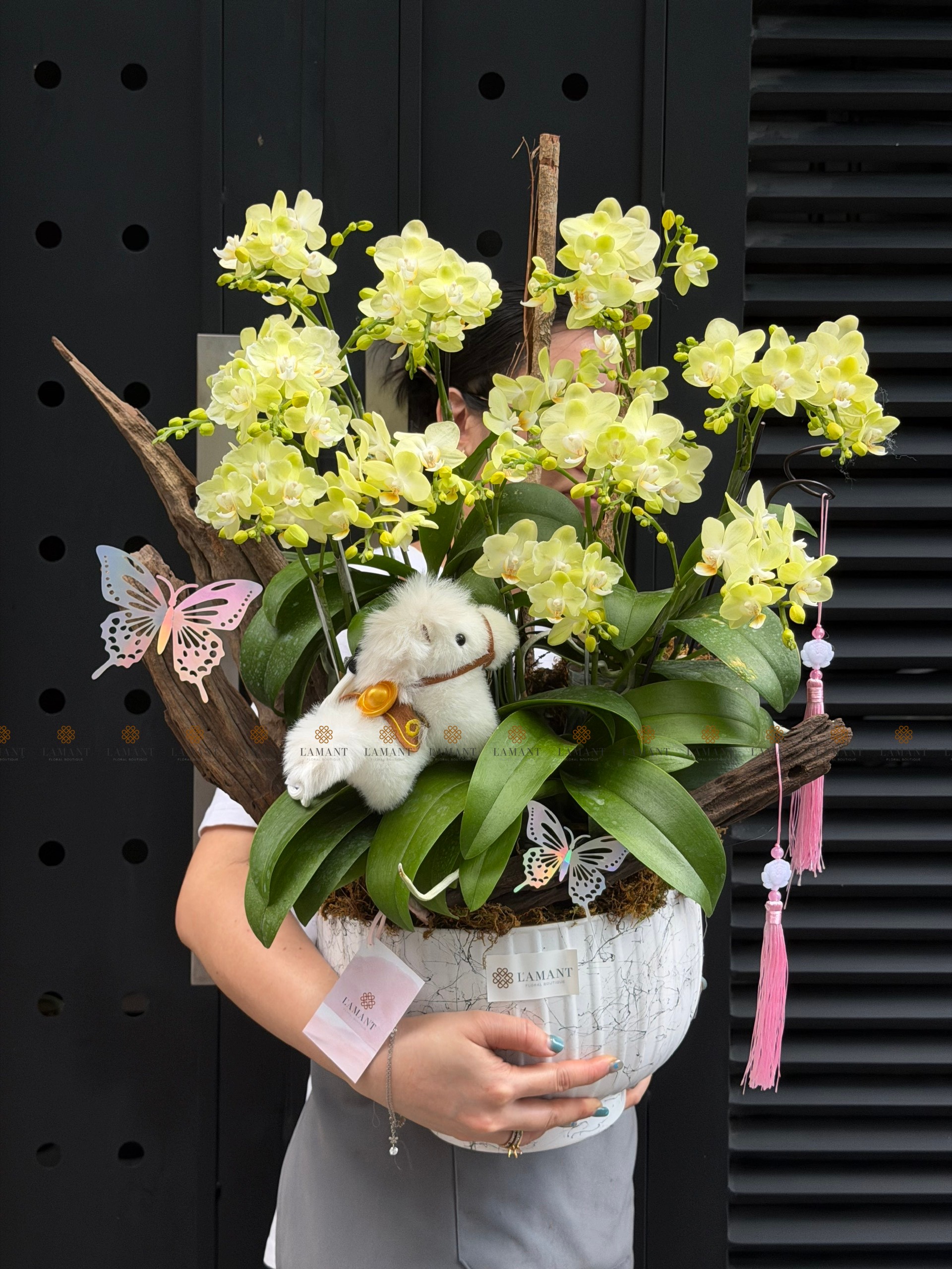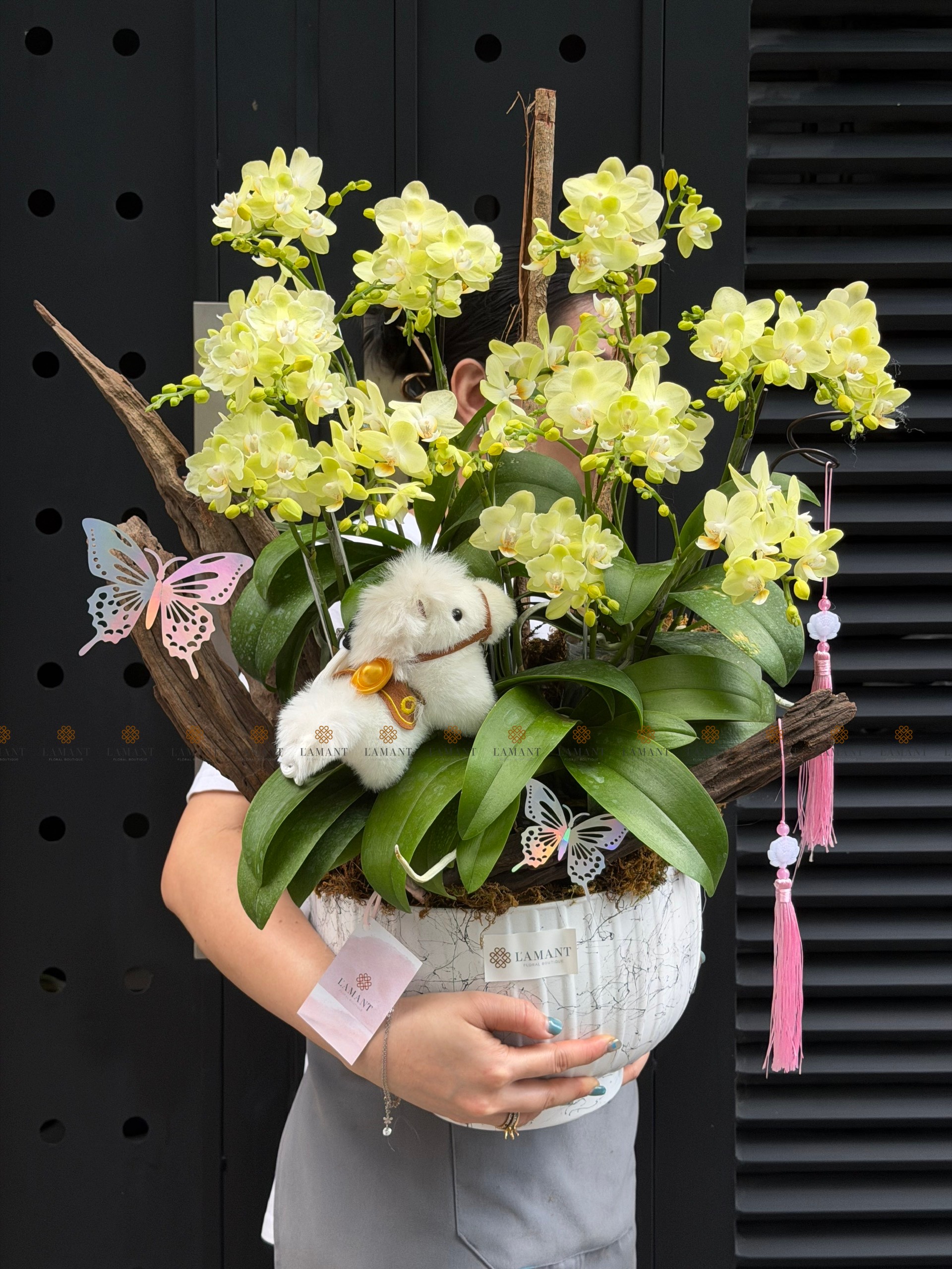 CHẬU HOA CHÚC MỪNG LAN MINI L0069