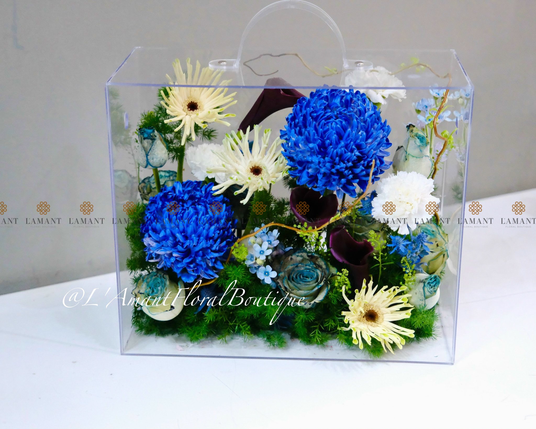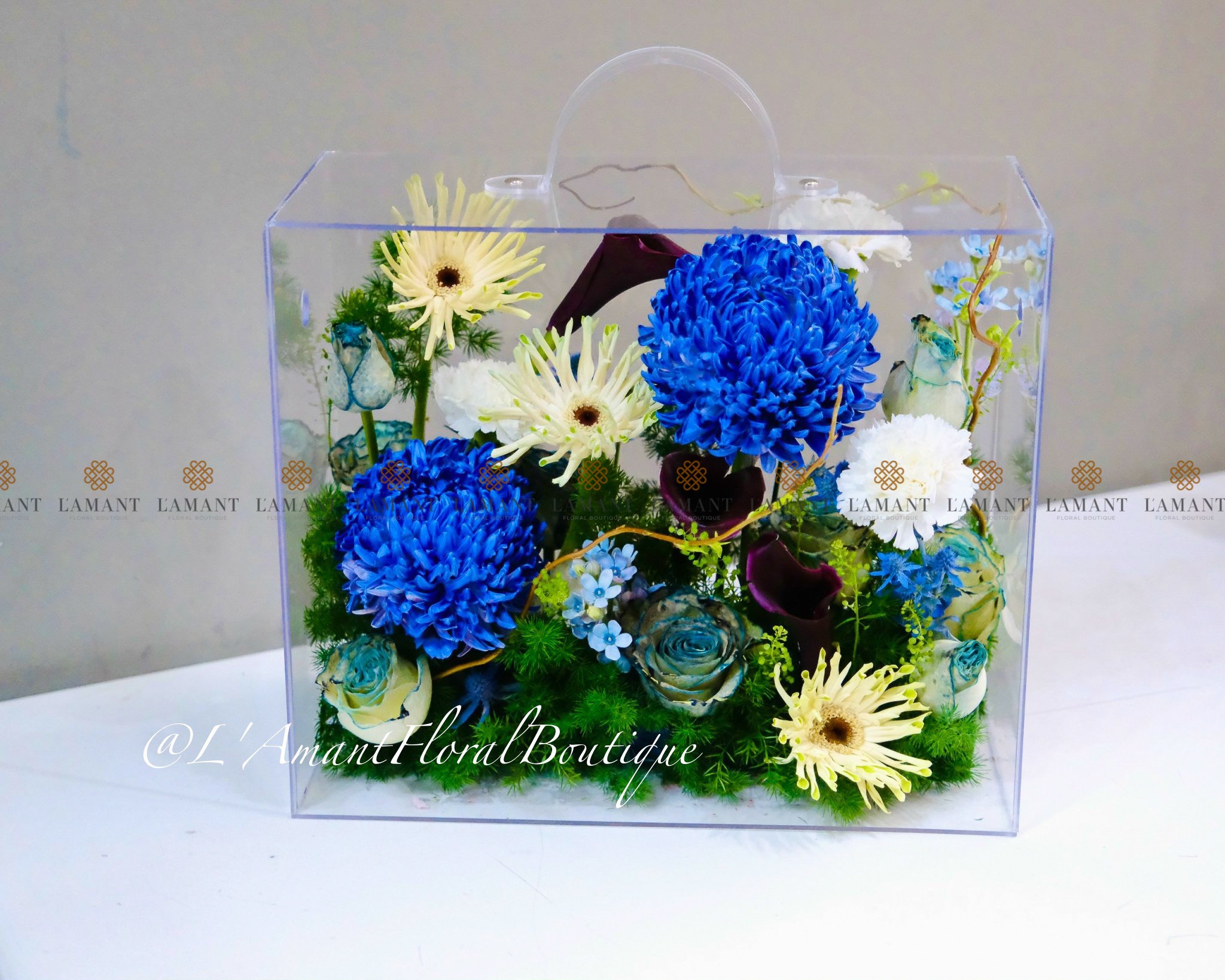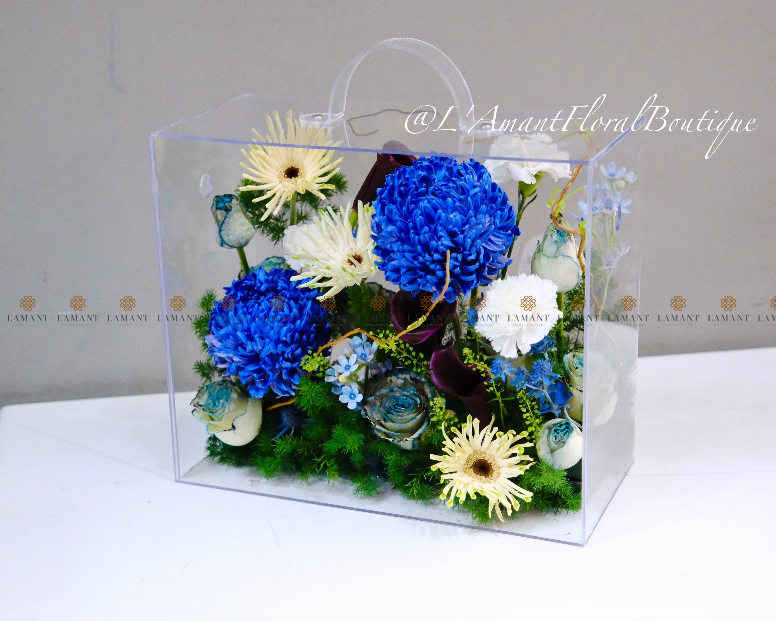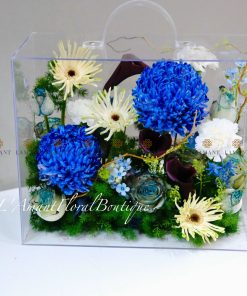 Hộp hoa mica cao cấp màu xanh dương