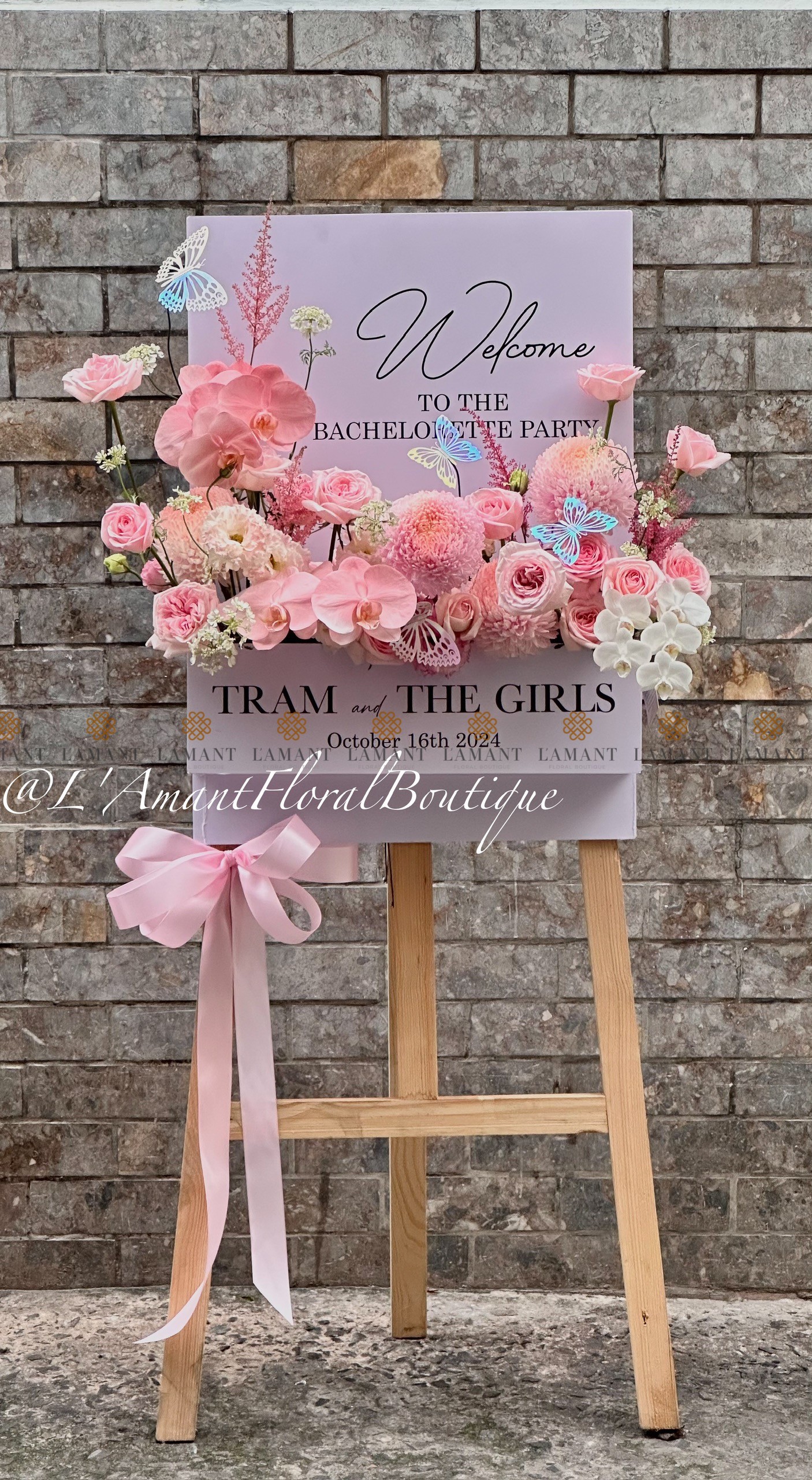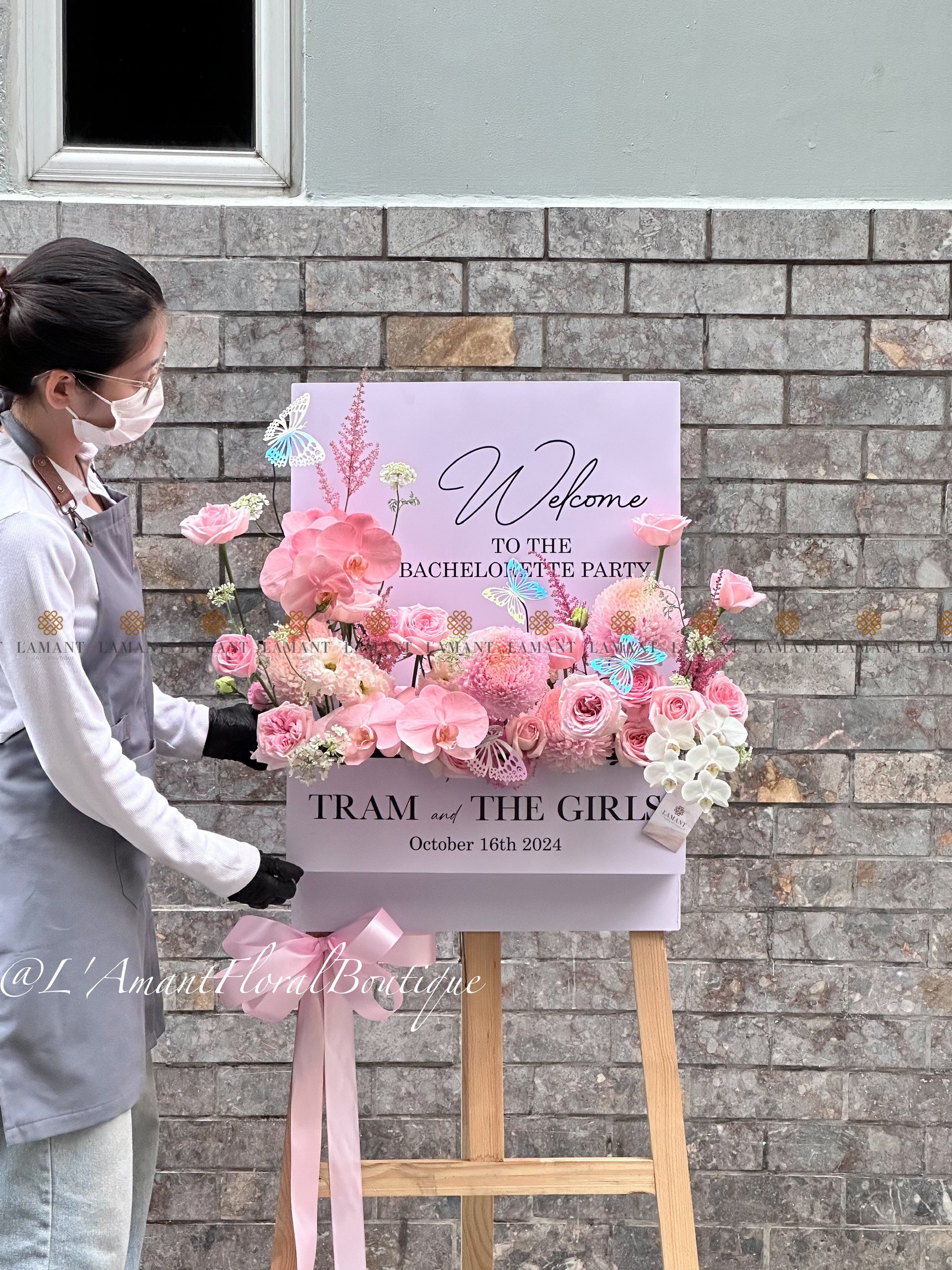 KỆ HOA CHÚC MỪNG MÀU HỒNG K0002