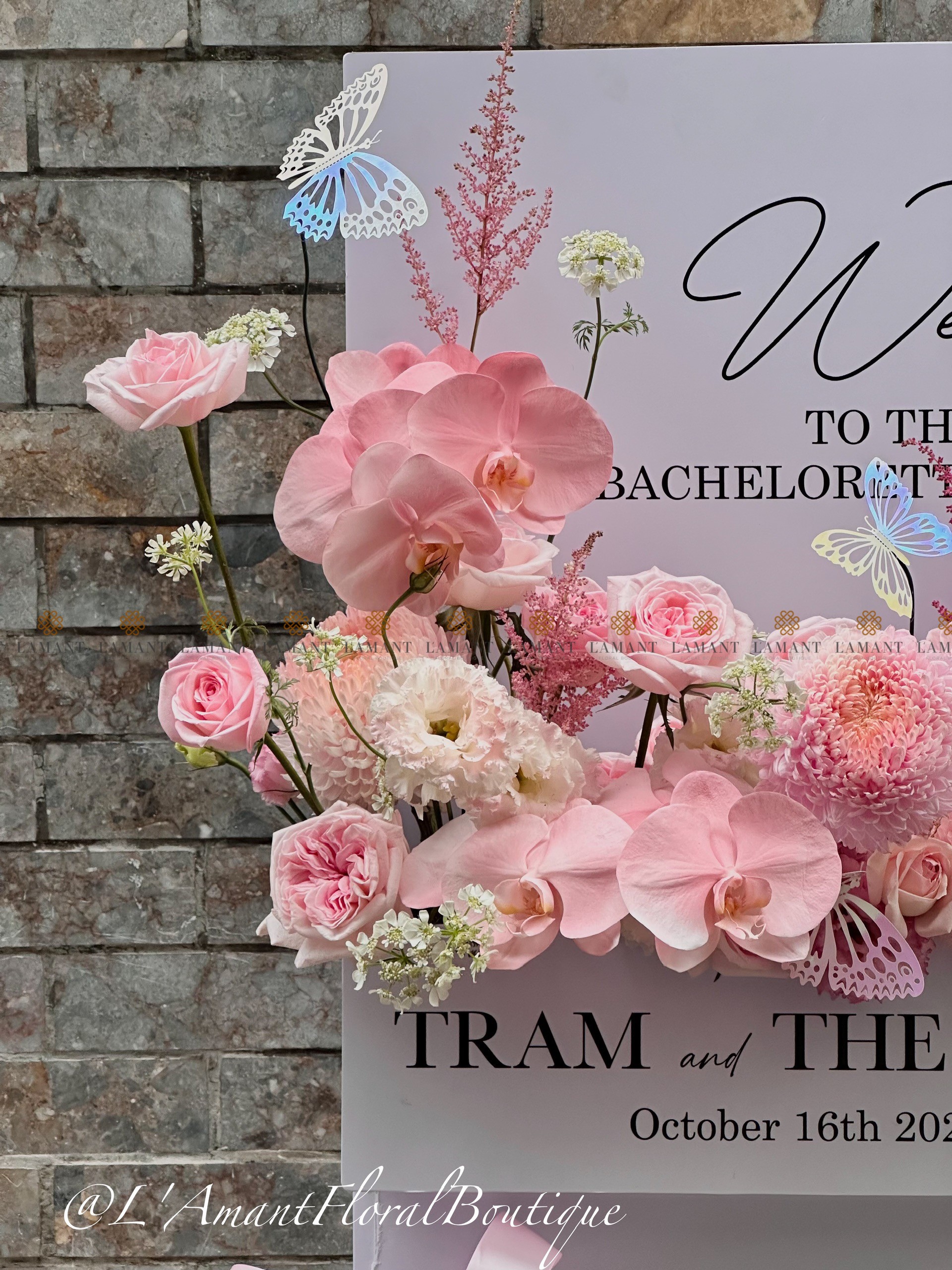Hoa chính: Cúc mẫu đơn, lan hồ điệp, hoa hồng, astilbe