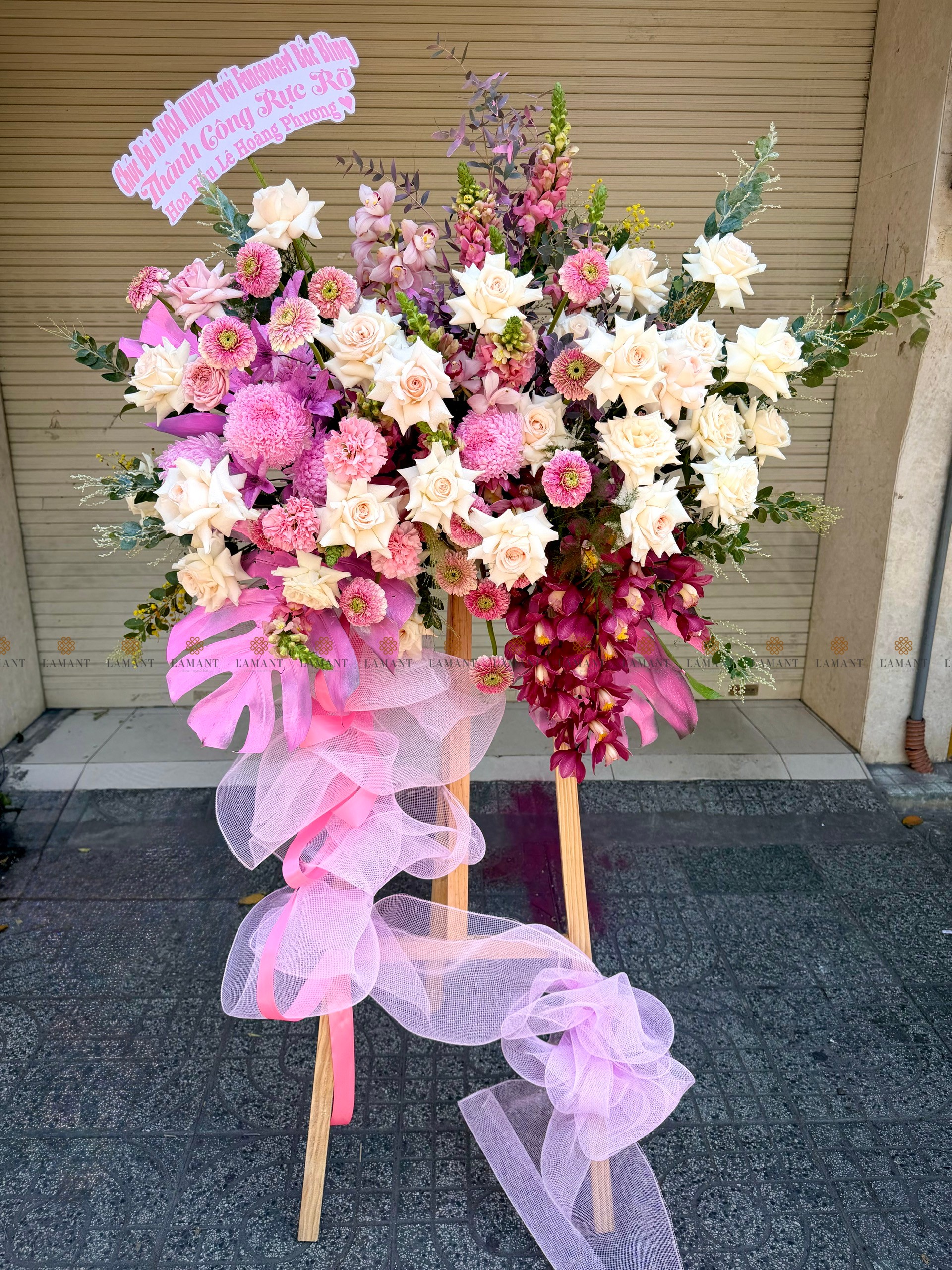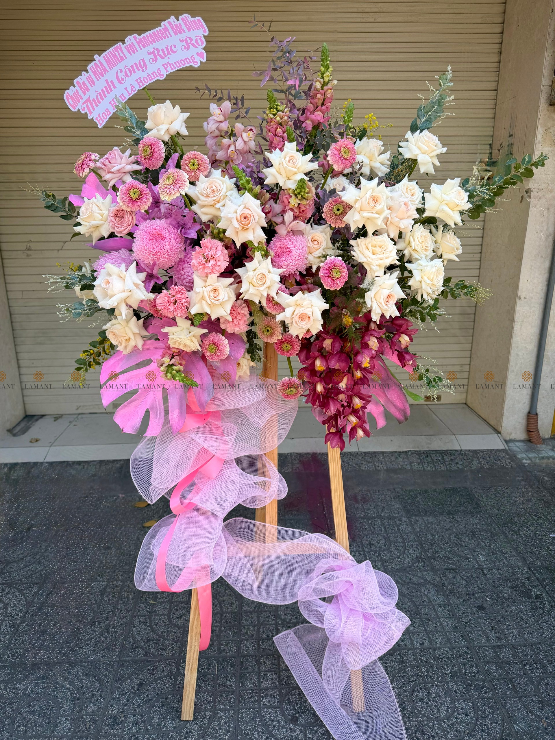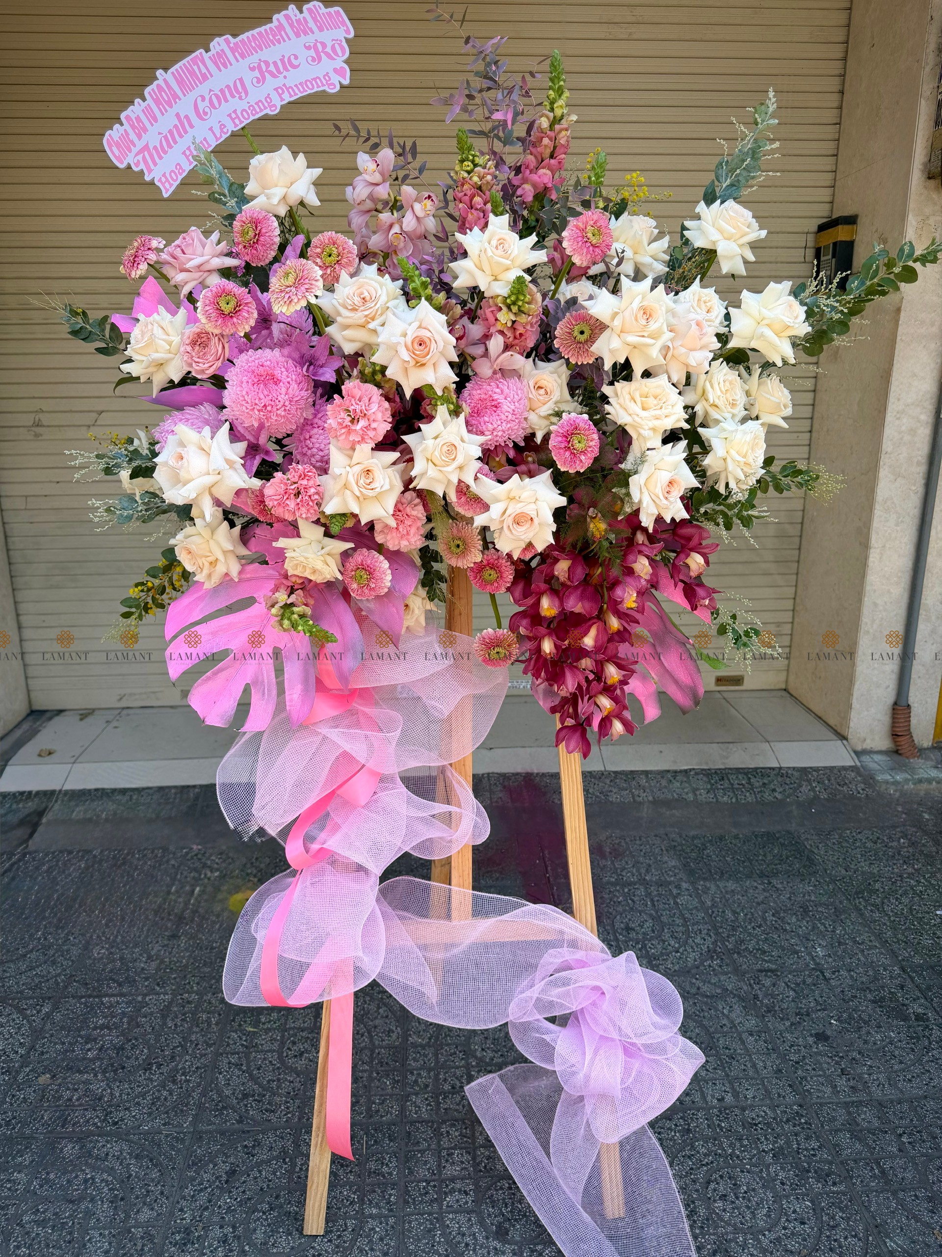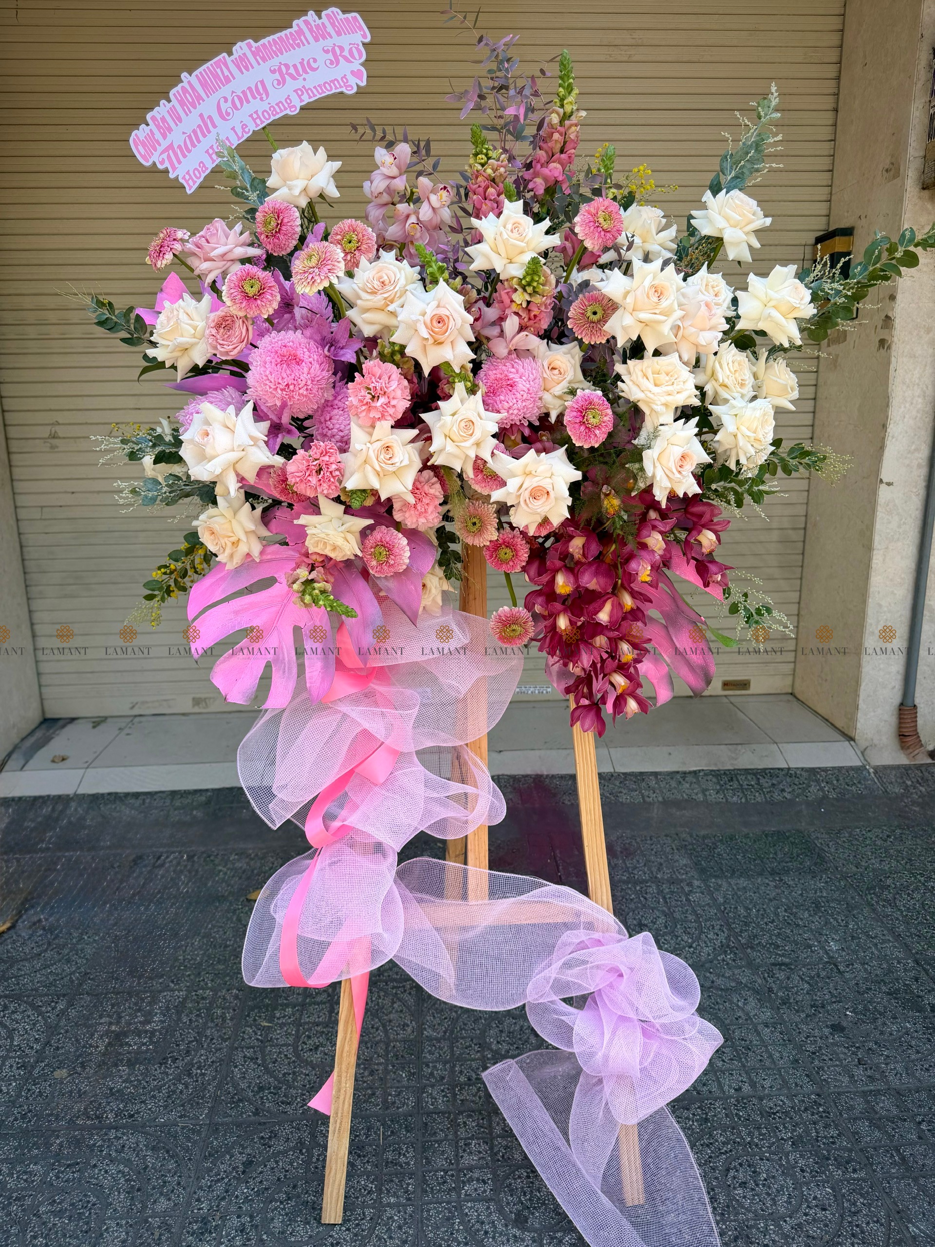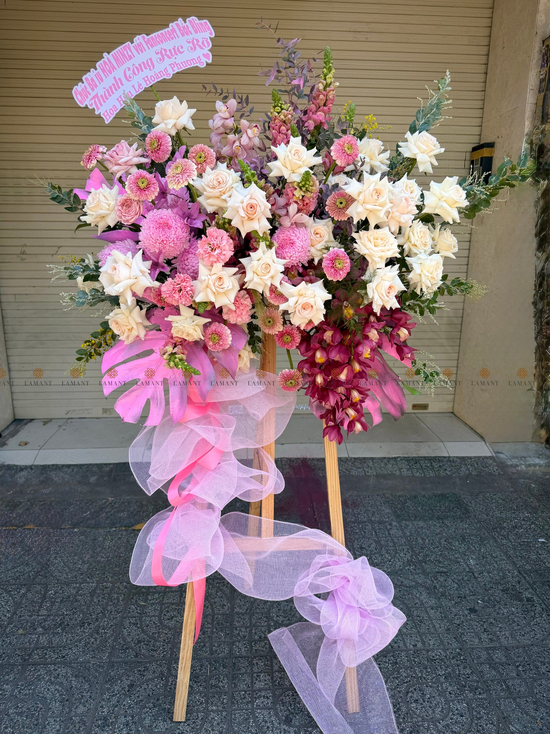 KỆ HOA CHÚC MỪNG TONE HỒNG H0035