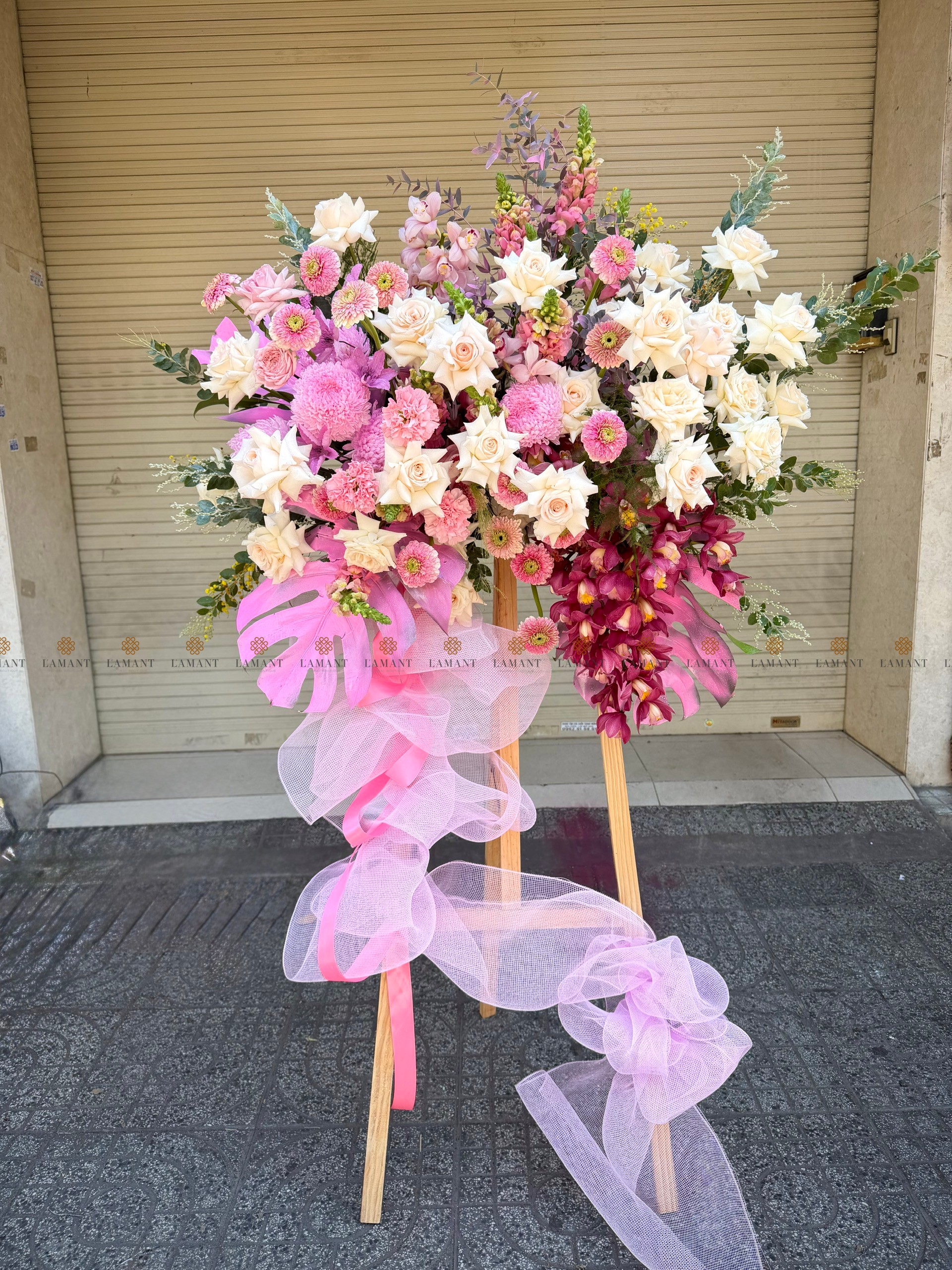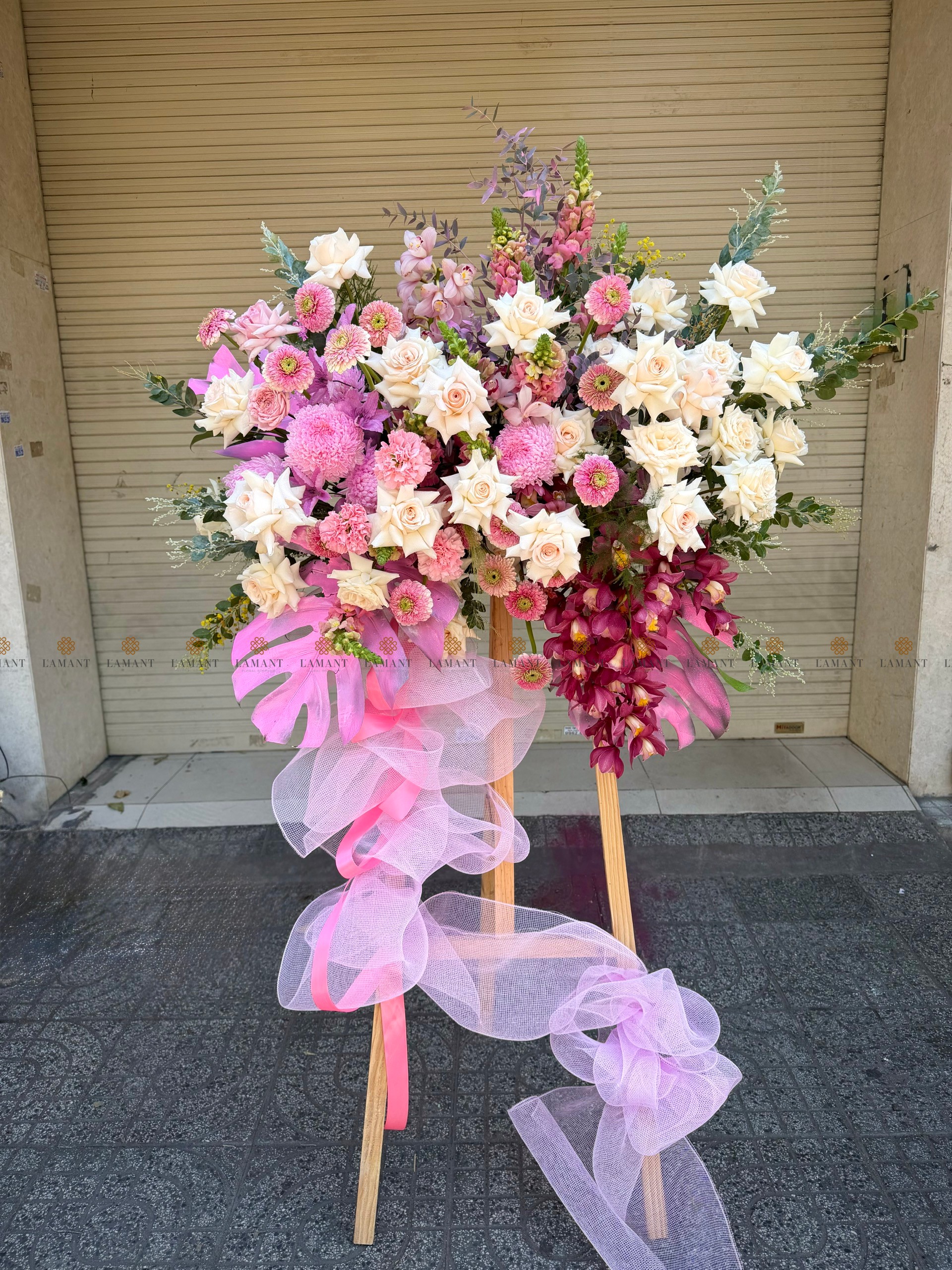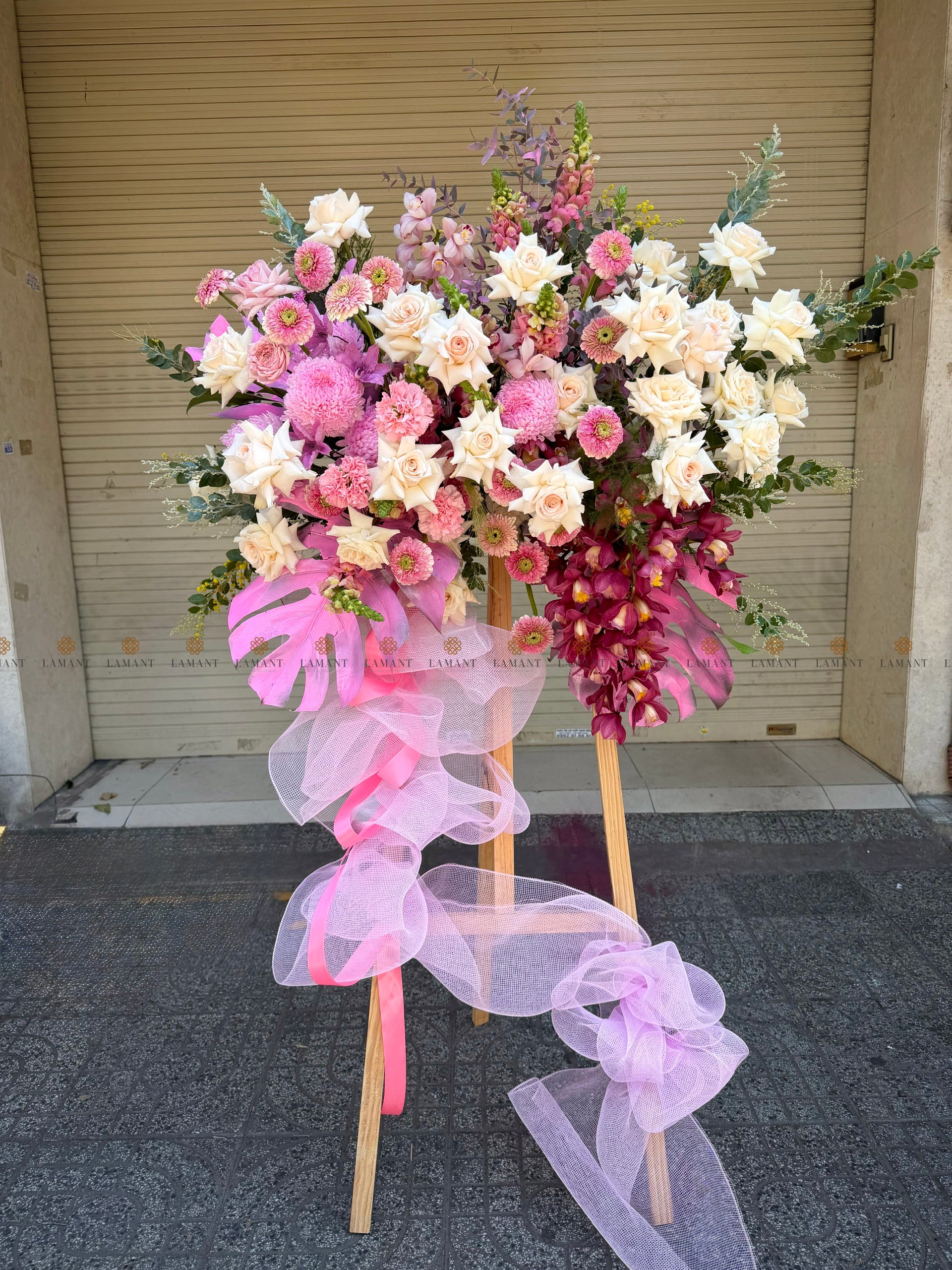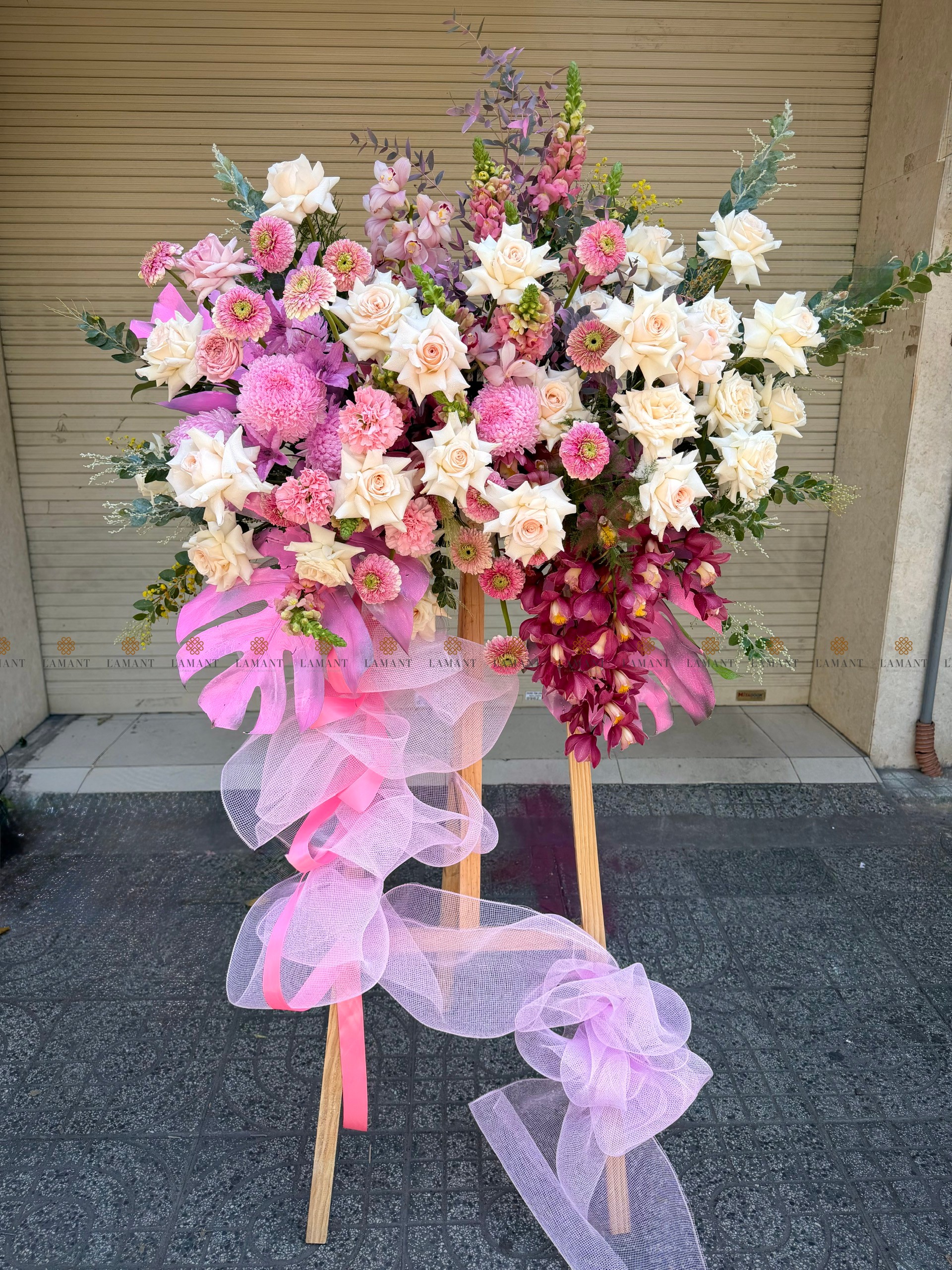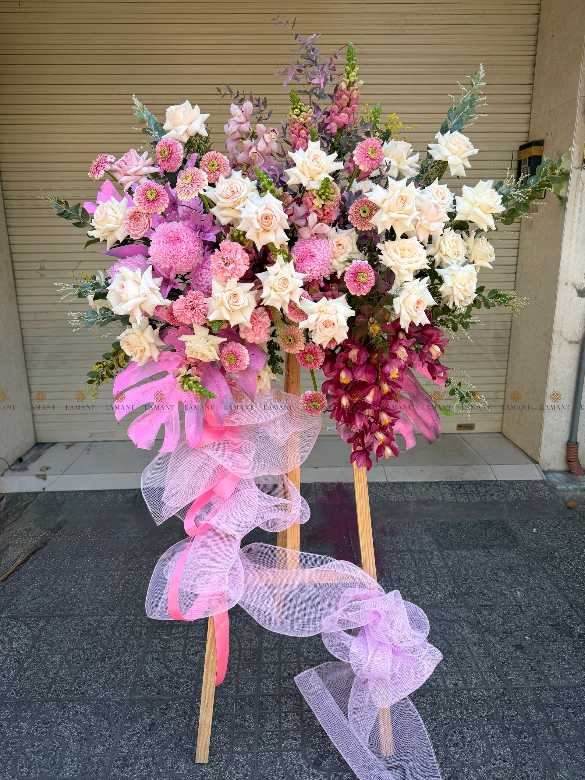 KỆ HOA CHÚC MỪNG TONE HỒNG H0035