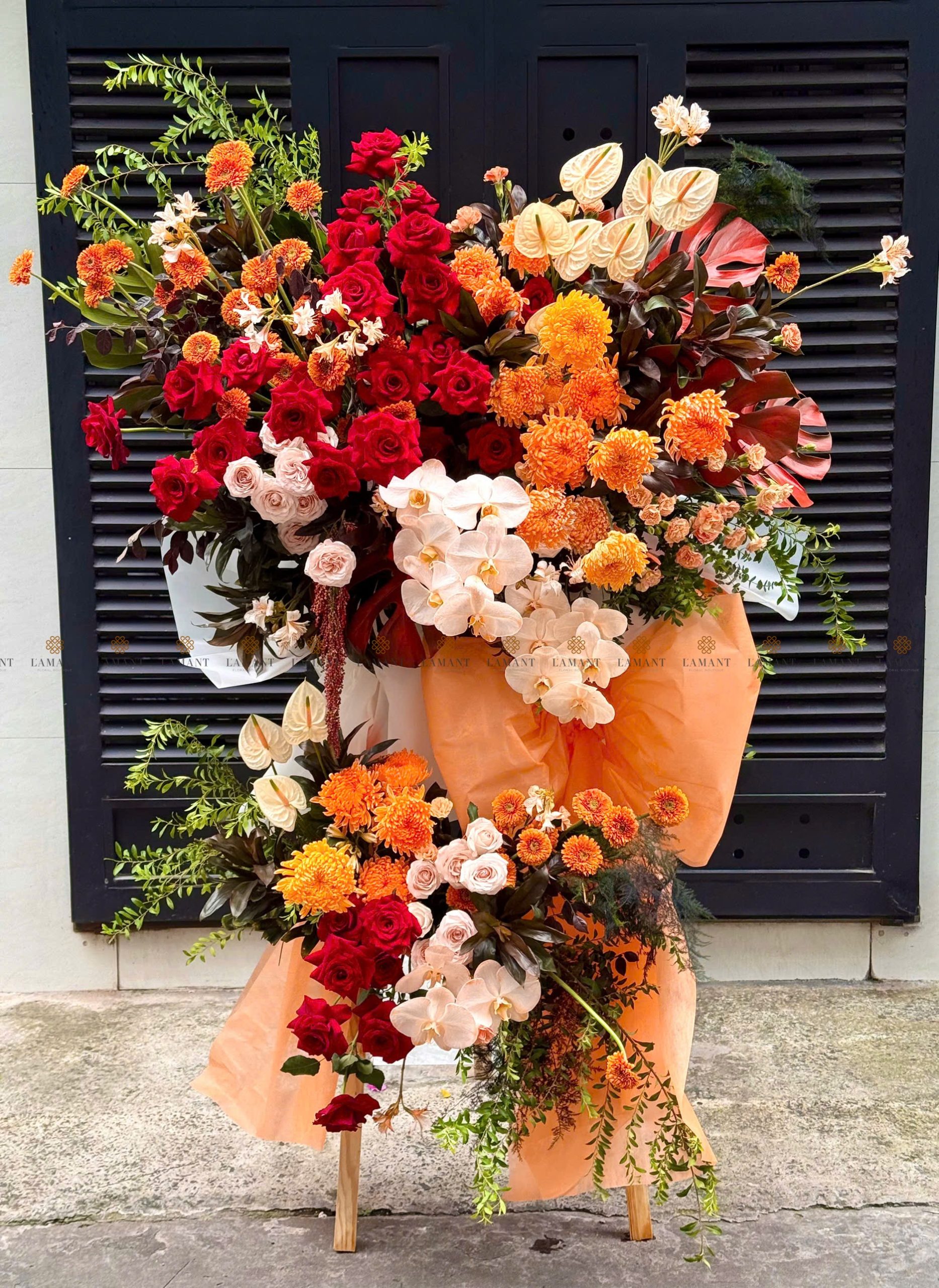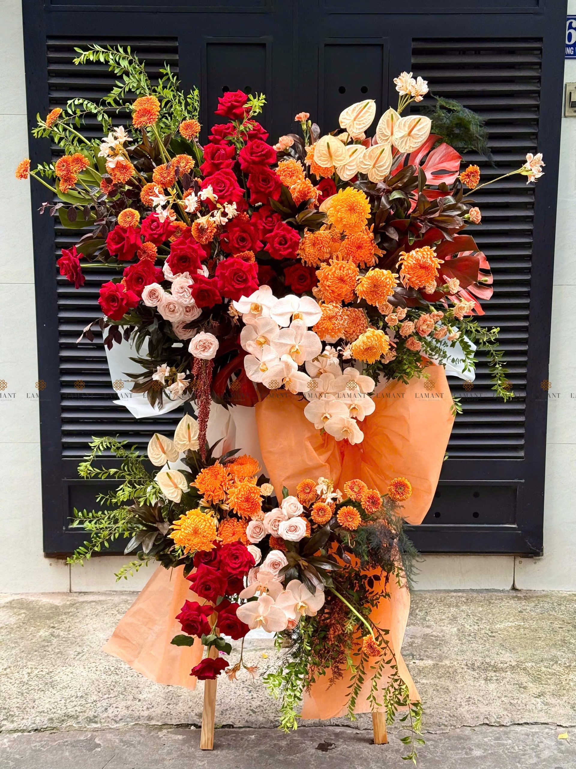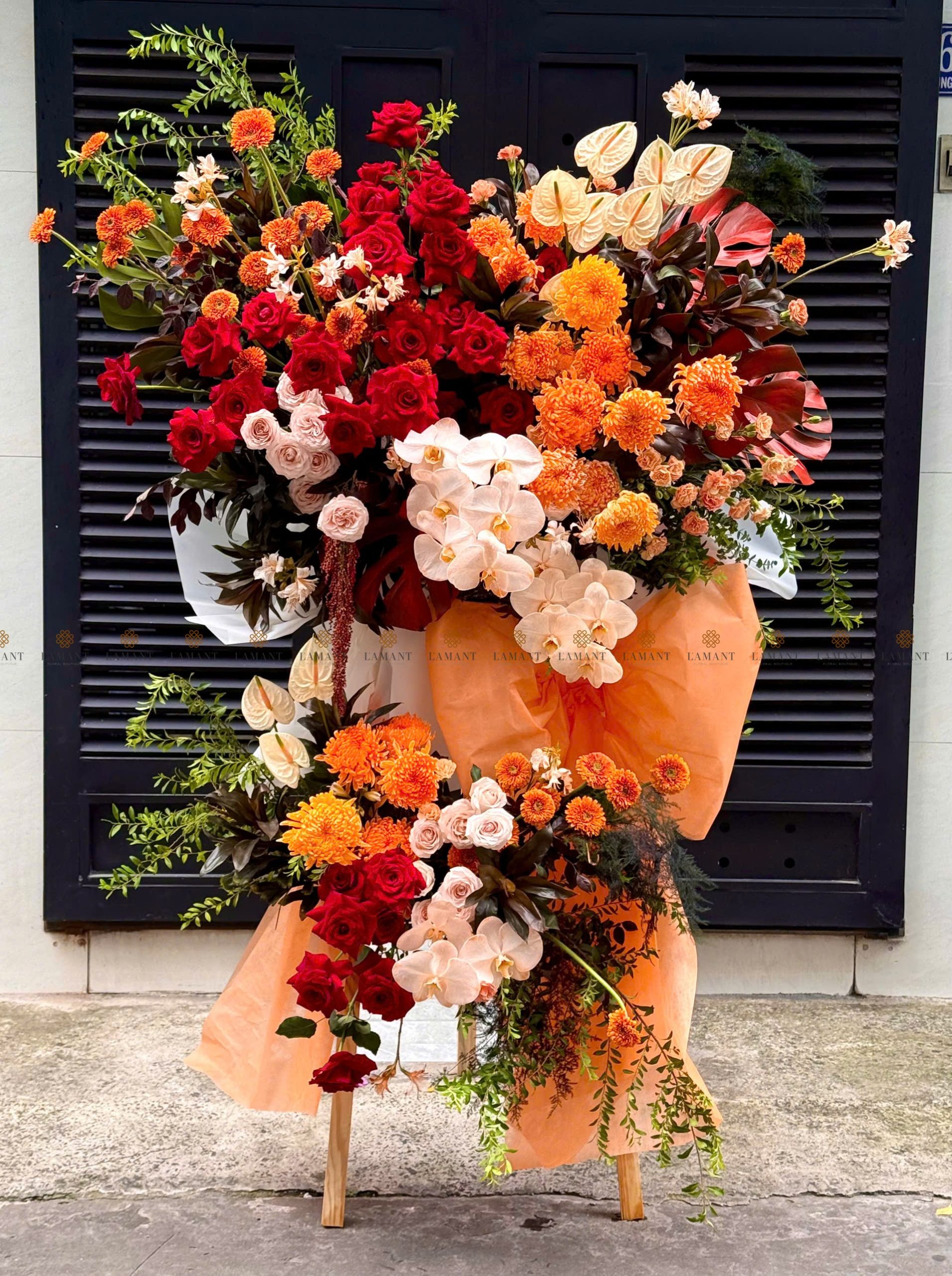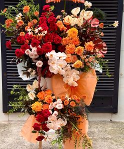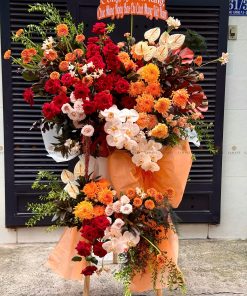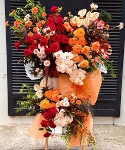 KỆ HOA KHAI TRƯƠNG TONE CAM ĐỎ H0026
