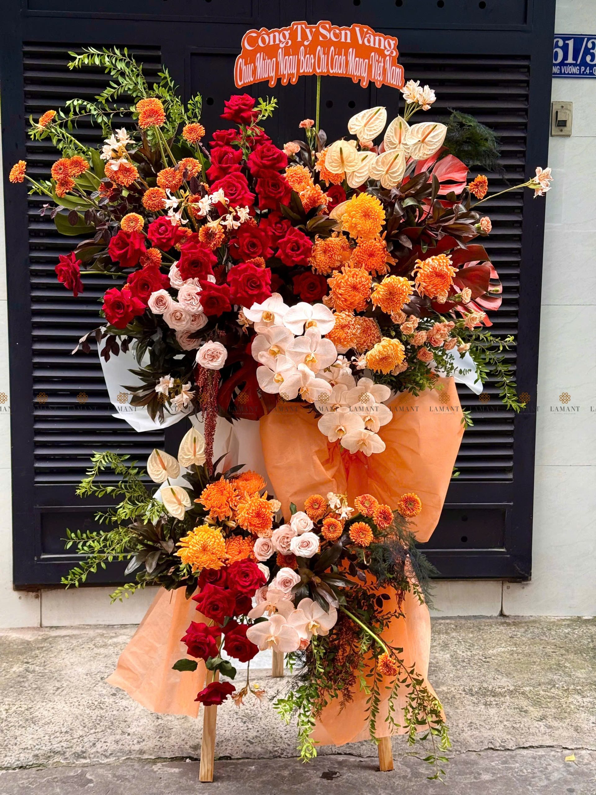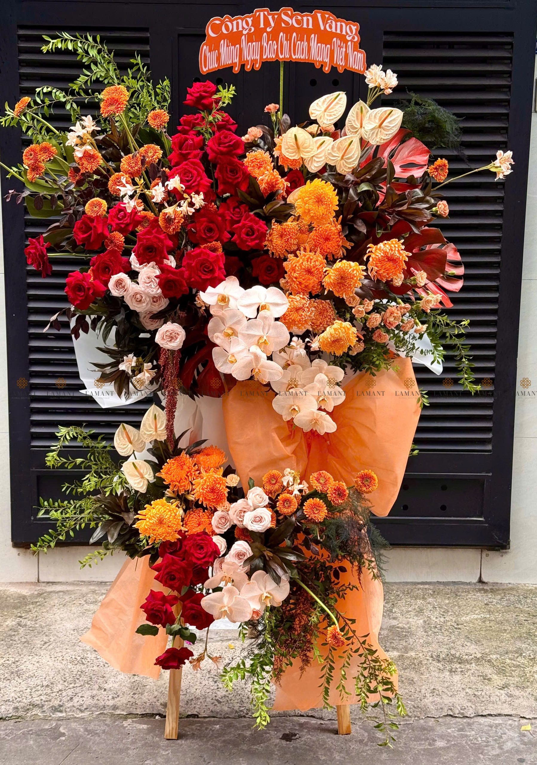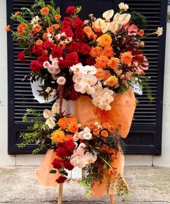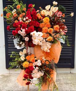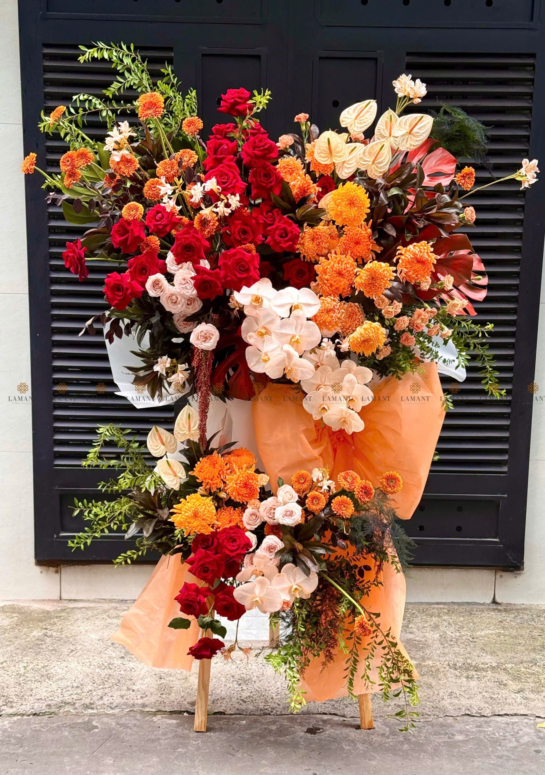 KỆ HOA KHAI TRƯƠNG TONE CAM ĐỎ H0026