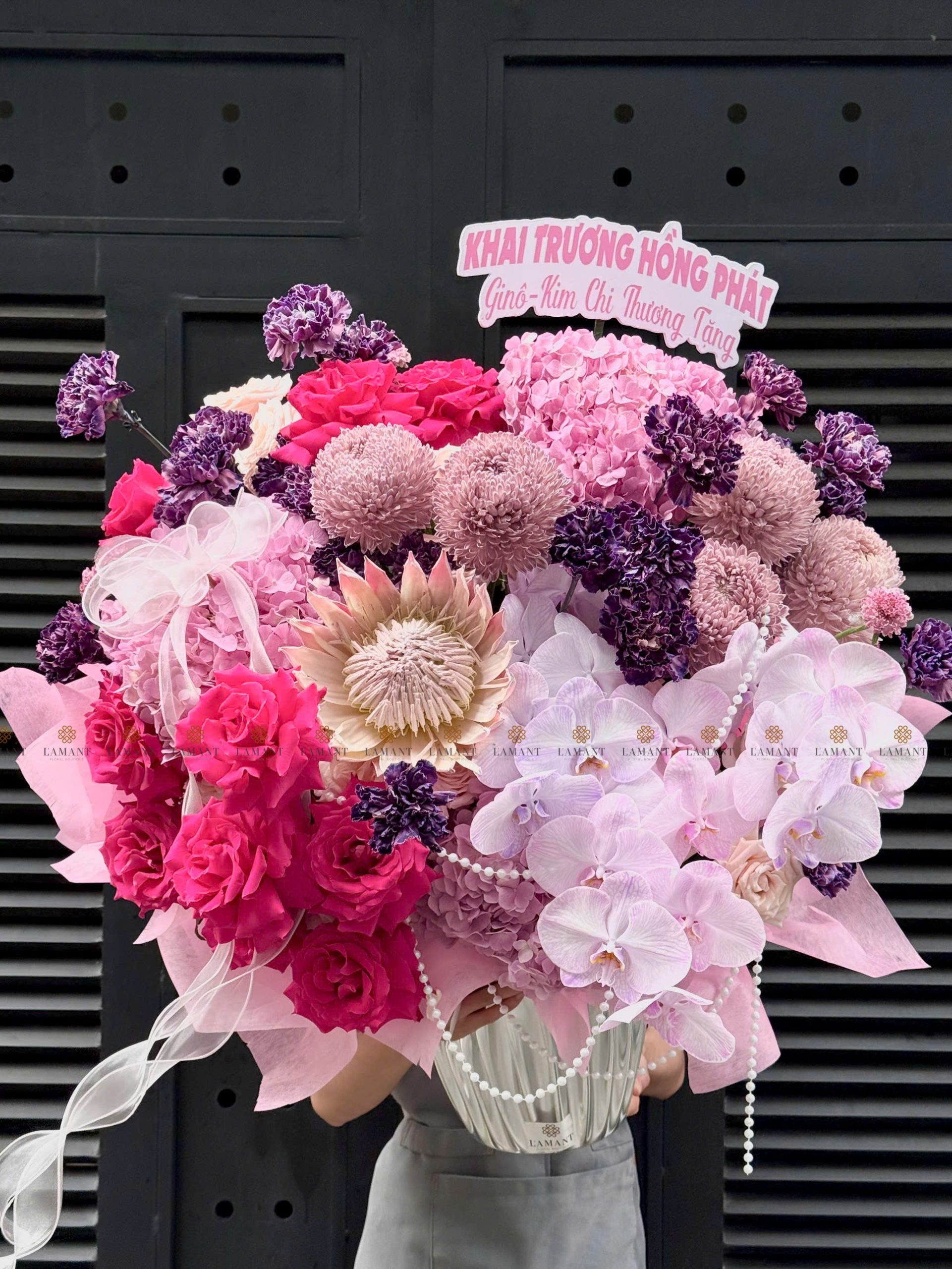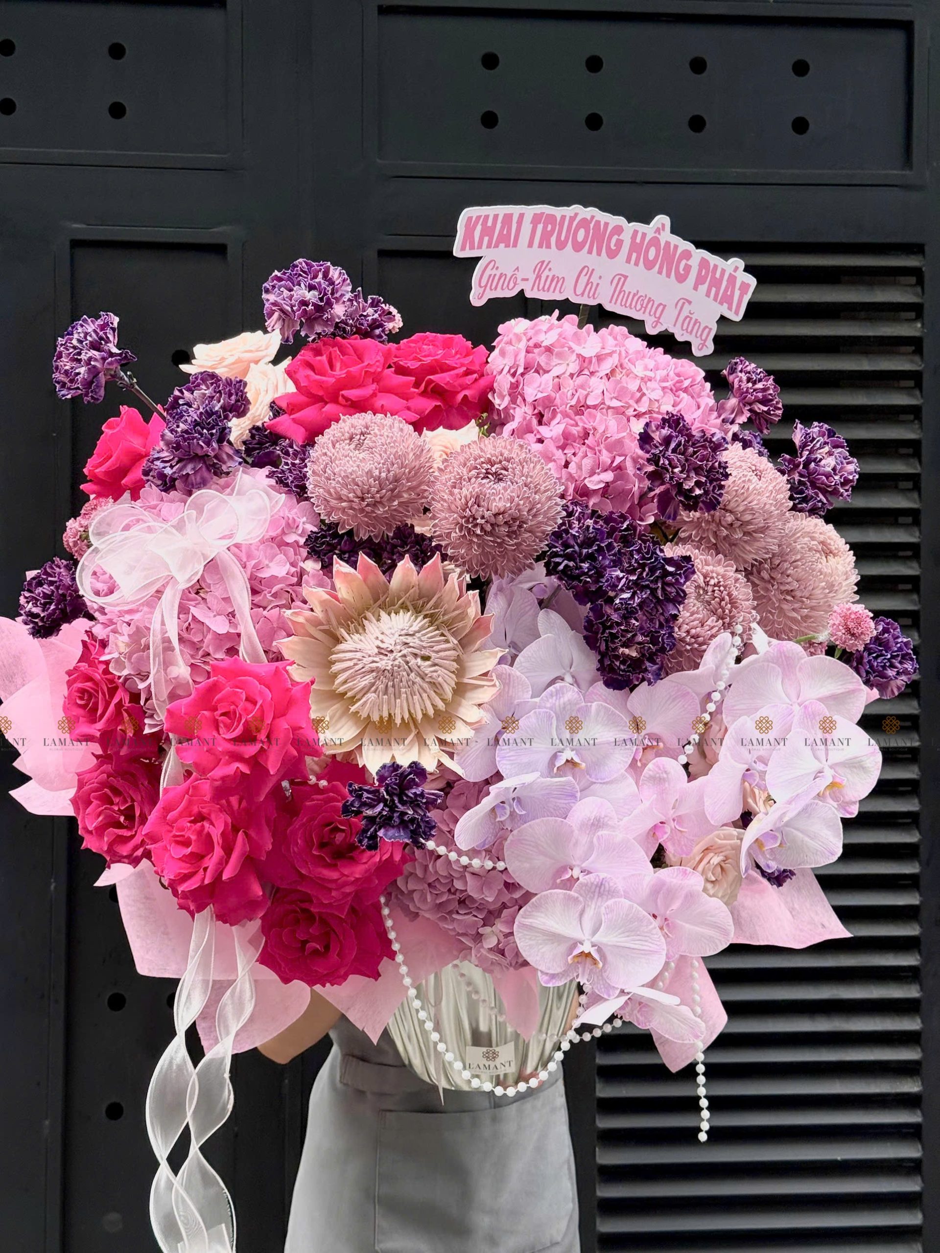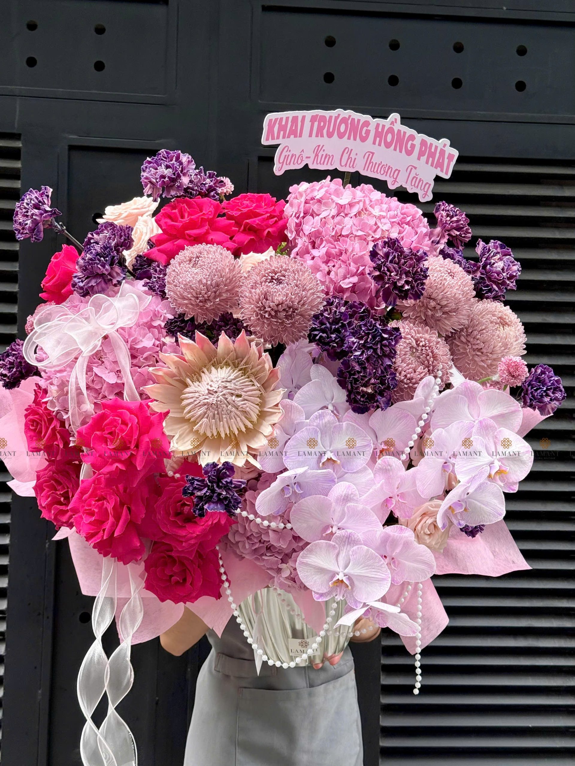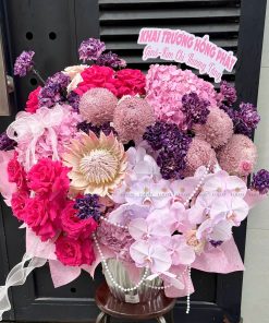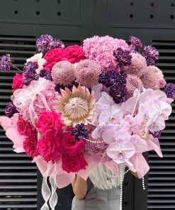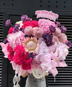 Hoa chính: Hồng nhập ecuador, Thảo đường hoàng đế, cúc mẫu đơn malaysia, Cẩm chướng colombia, Lan hồ điệp, Tú cầu