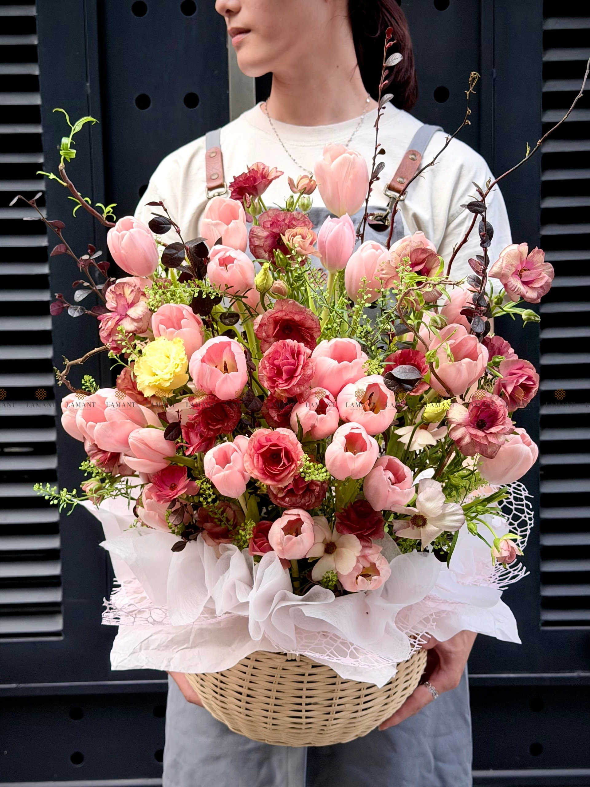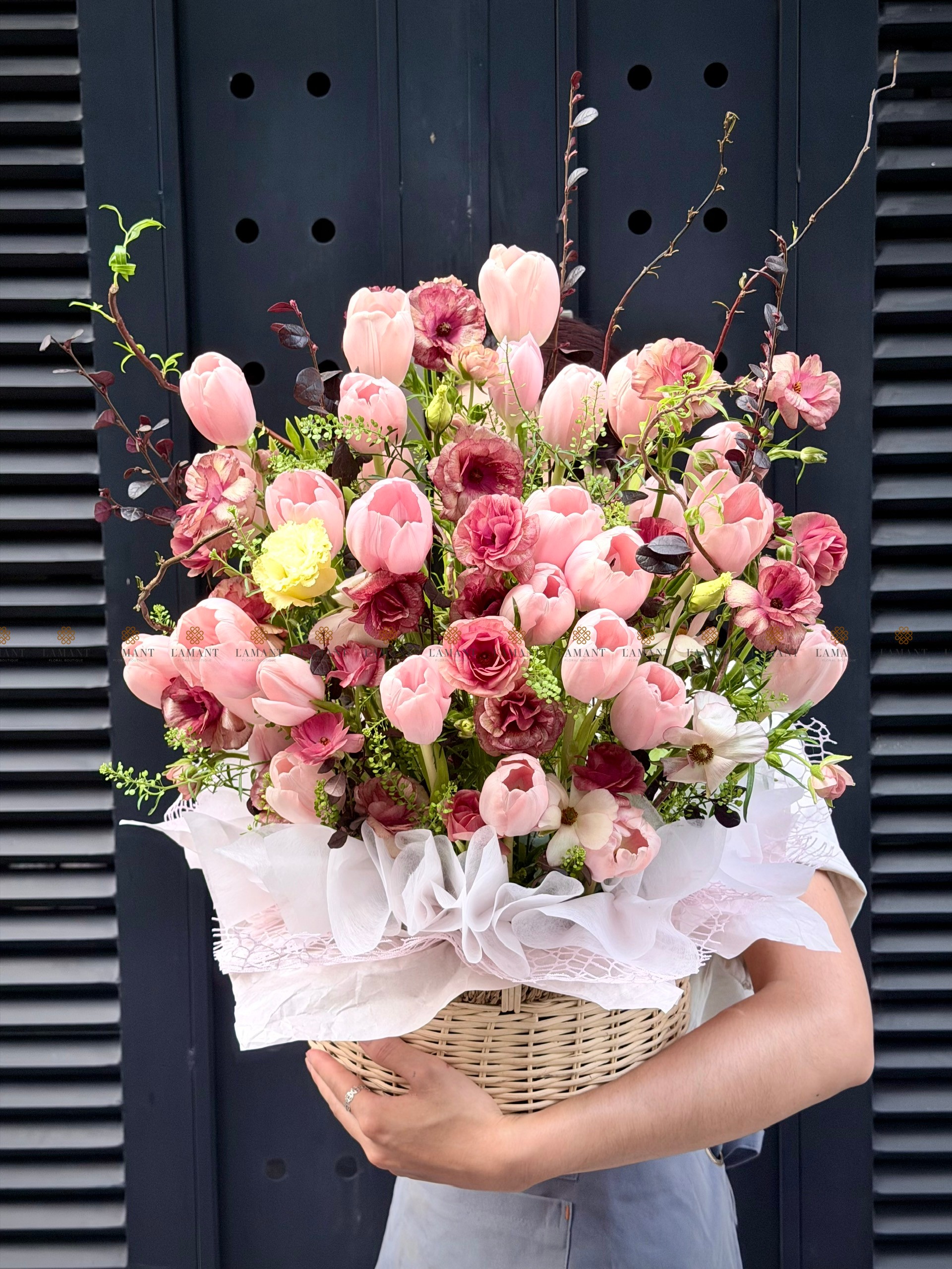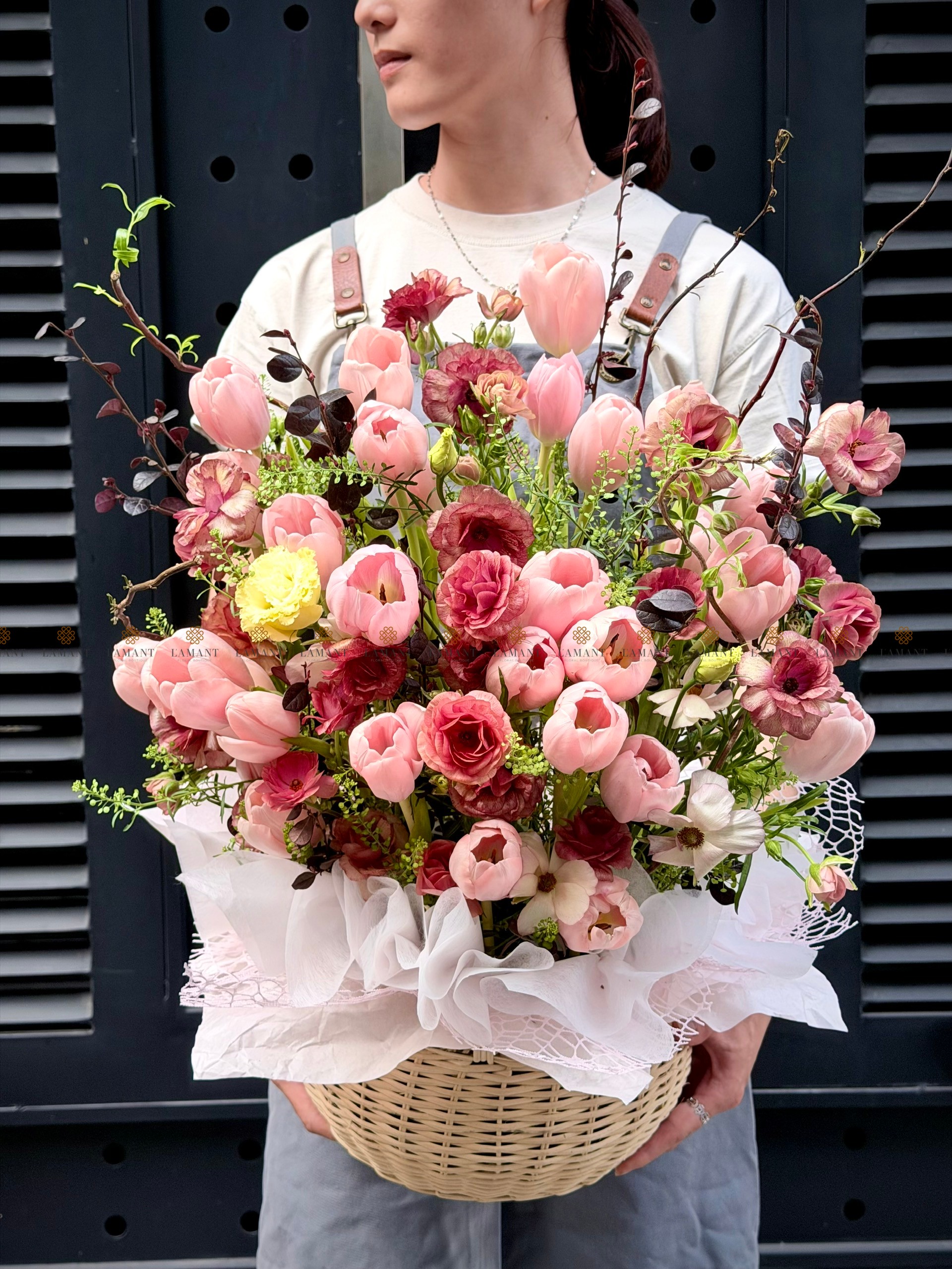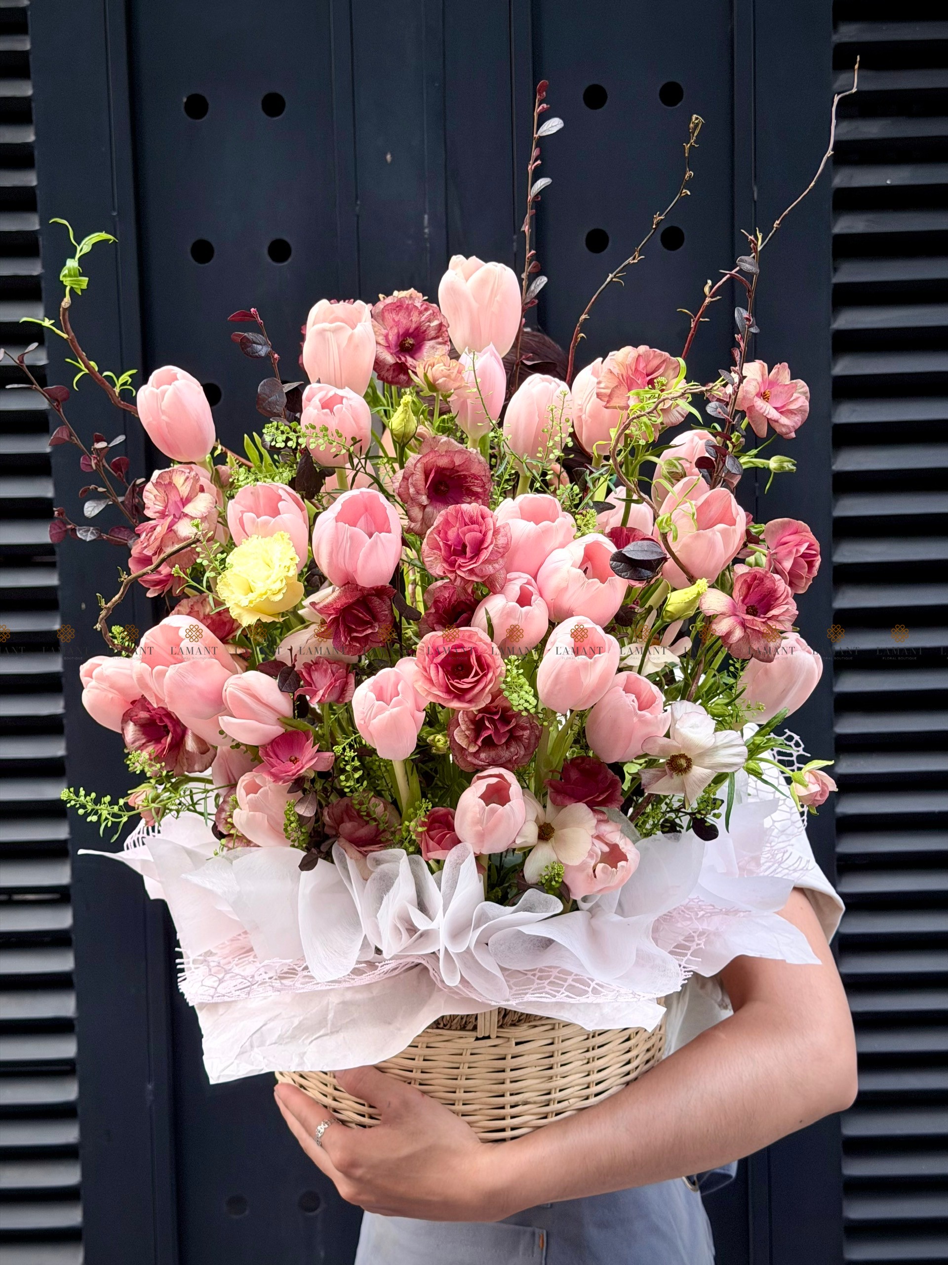 LẴNG HOA CHÚC MỪNG TULIP TONE HỒNG L0079