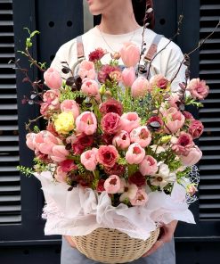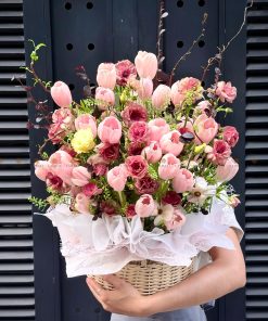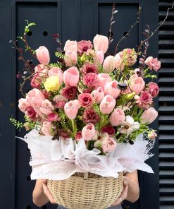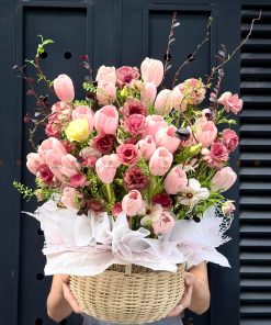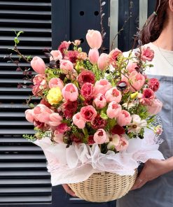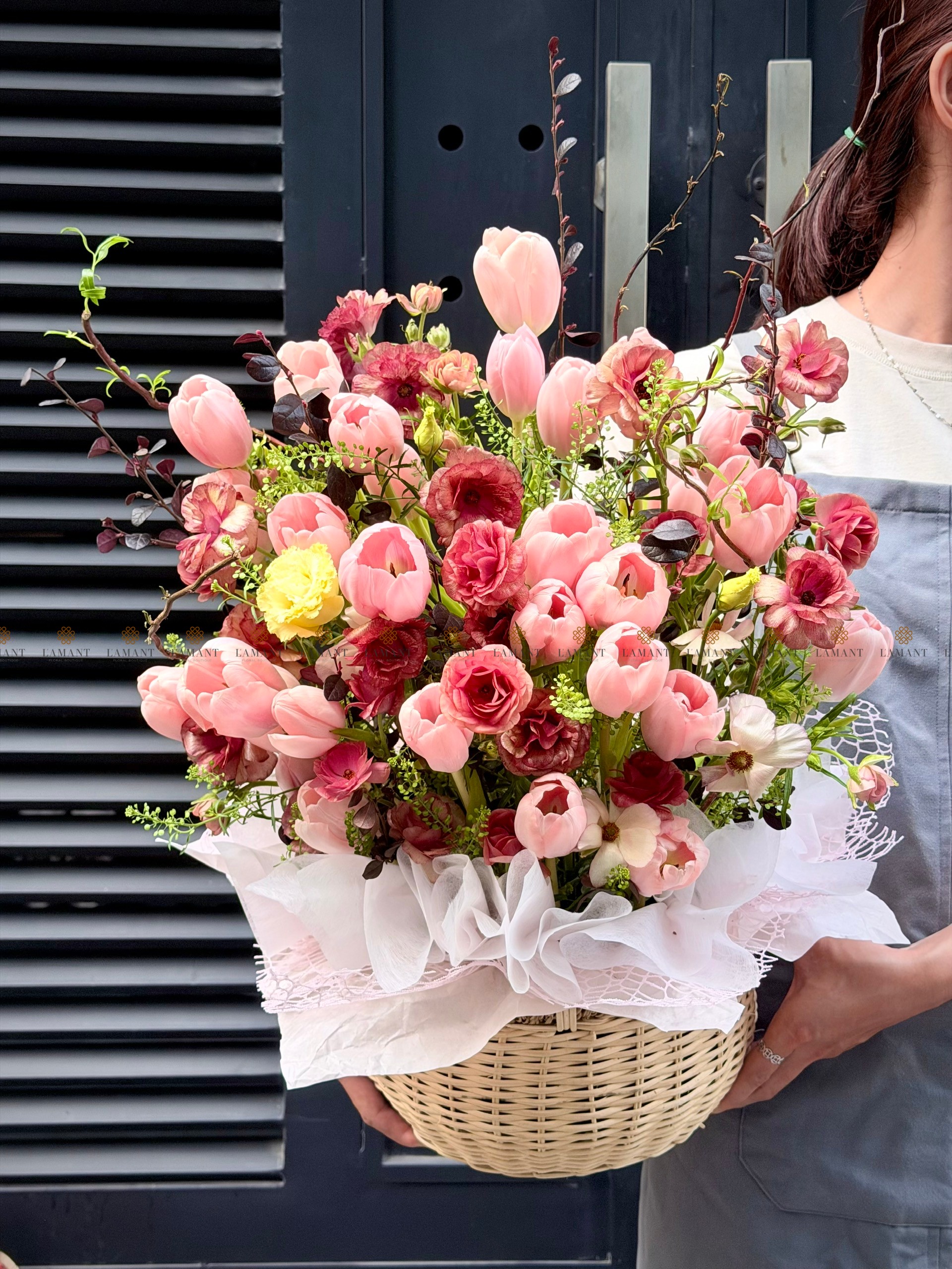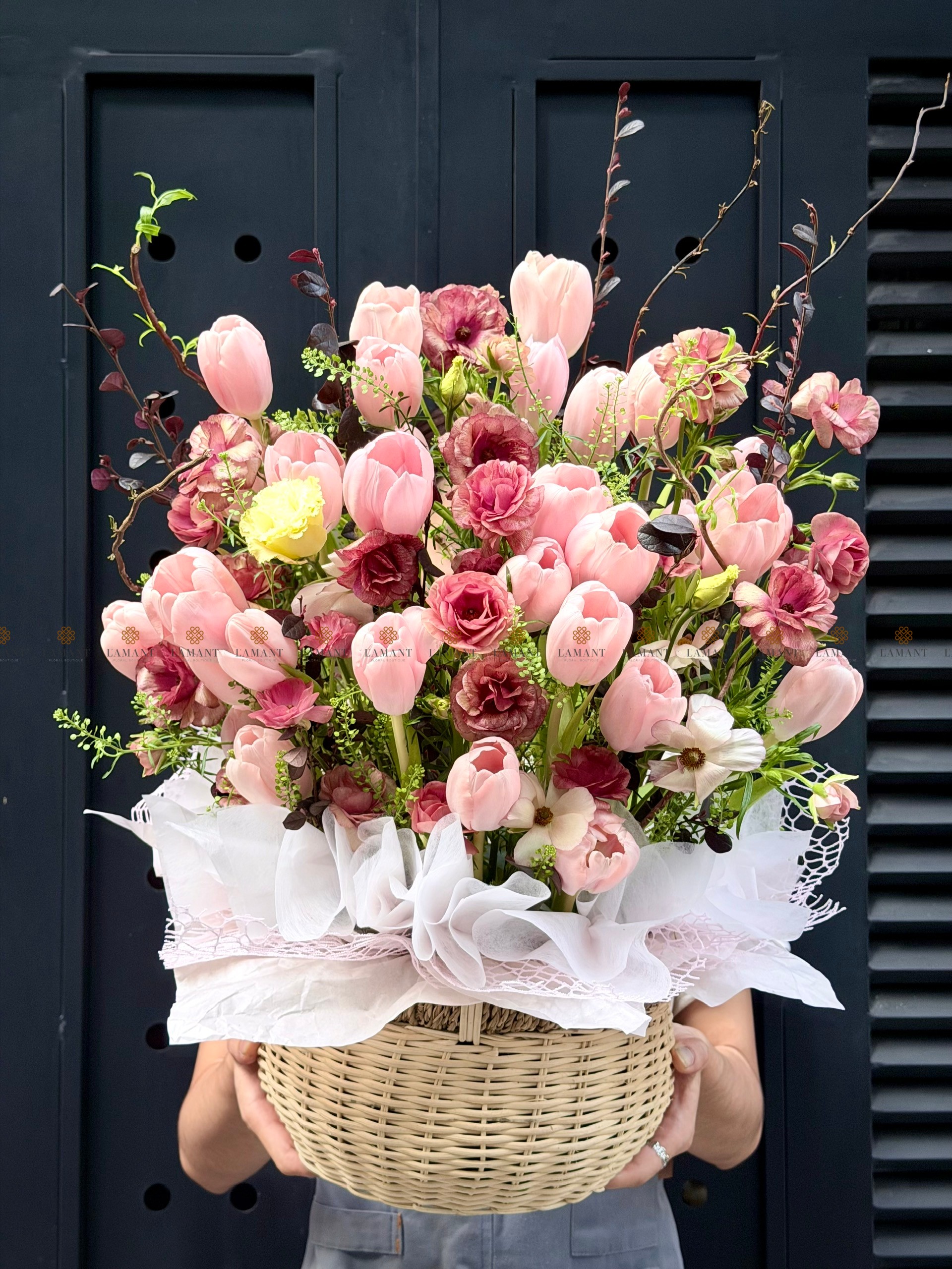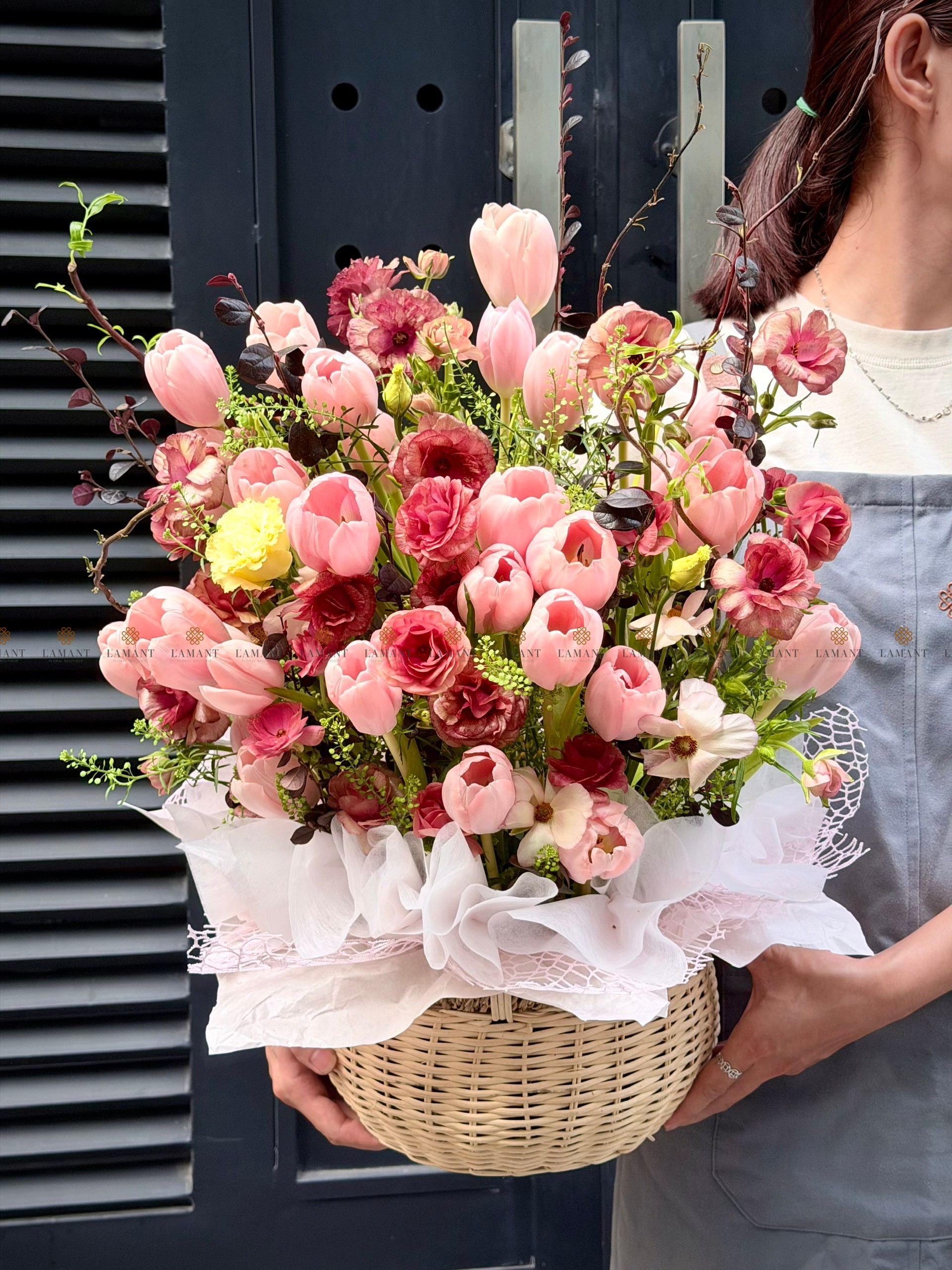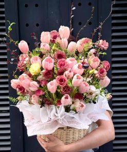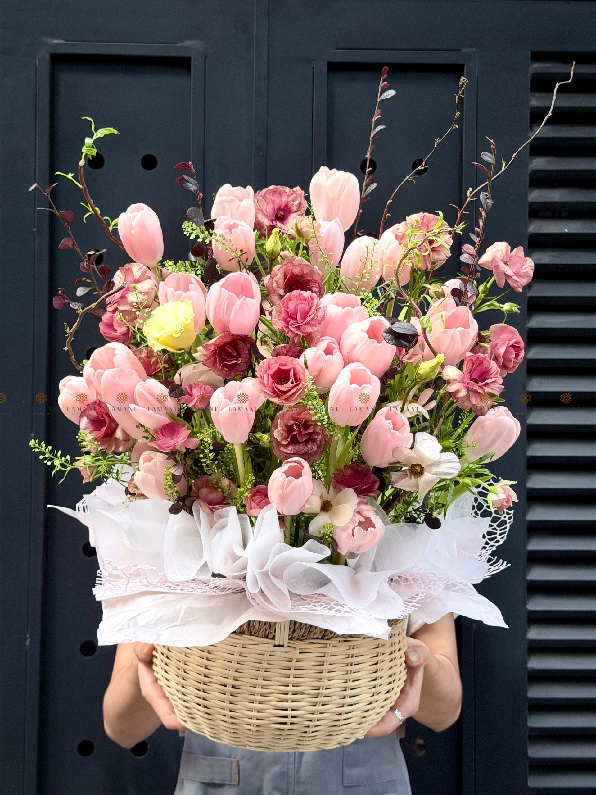 LẴNG HOA CHÚC MỪNG TULIP TONE HỒNG L0079